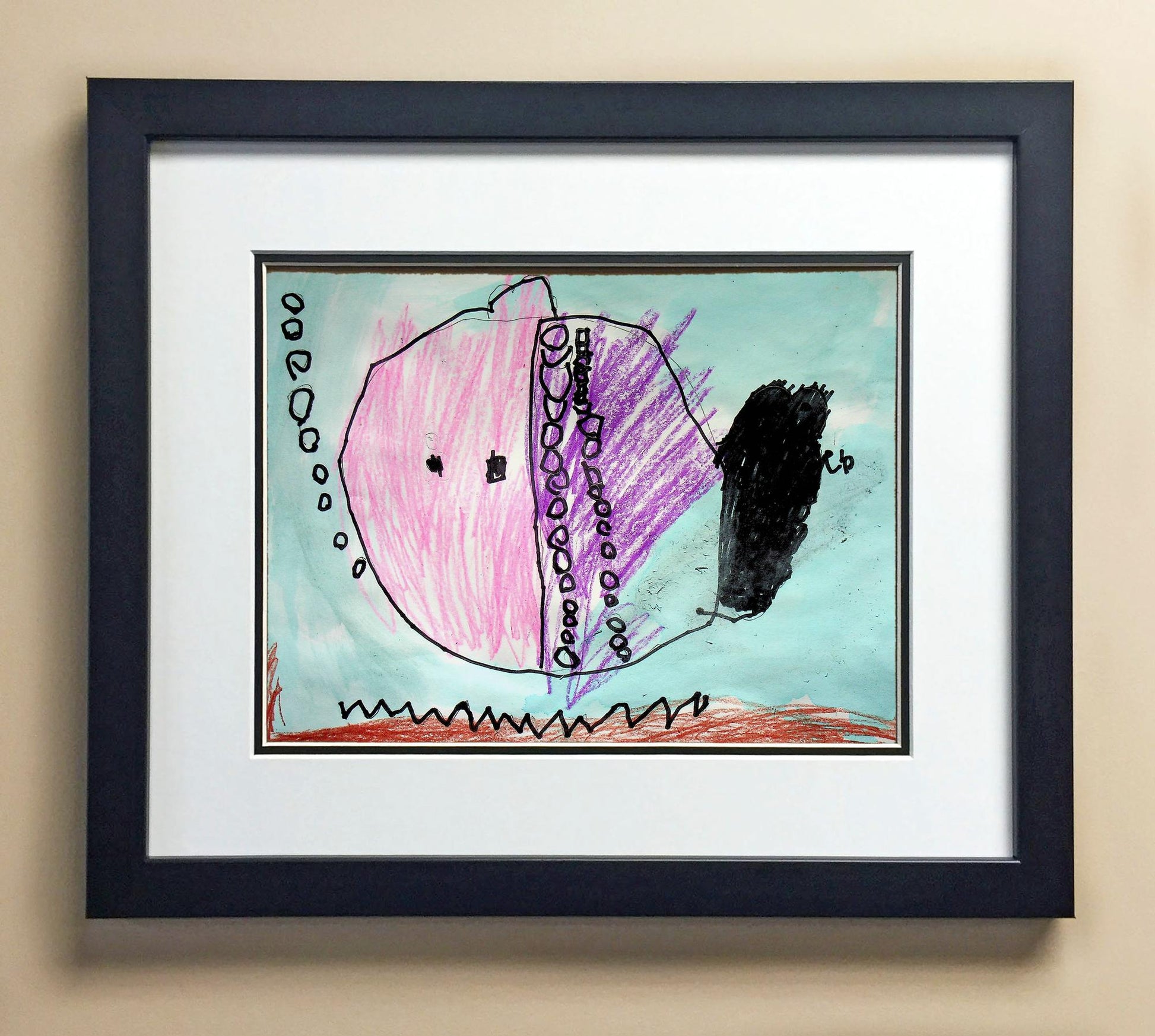 Included with the purchase is the Students Artwork, Frame, double matboard, shatter proof plexiglass, and a ready to hang backerboard with turnbuttons
