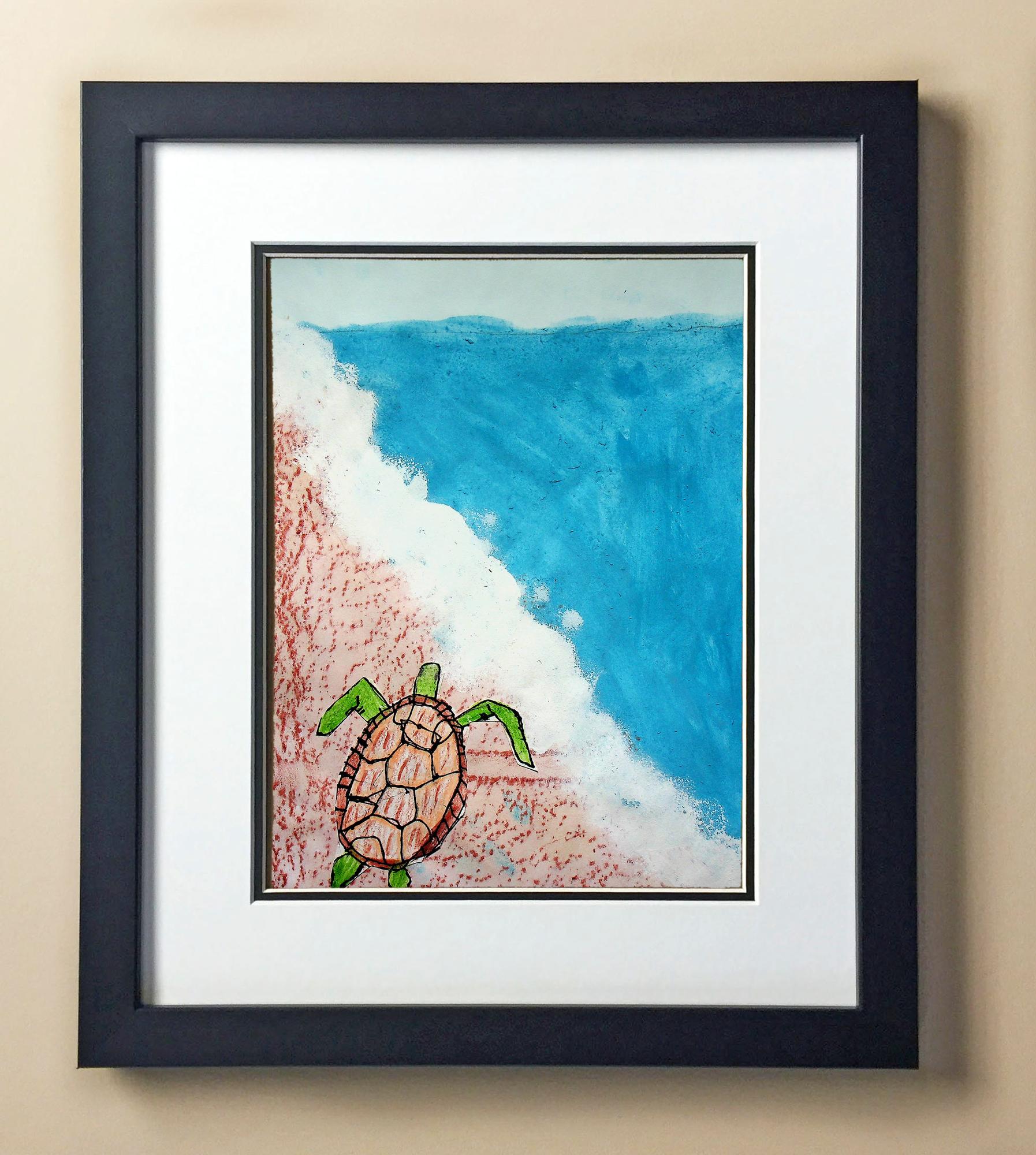 Included with the purchase is the Students Artwork, Frame, double matboard, shatter proof plexiglass, and a ready to hang backerboard with turnbuttons