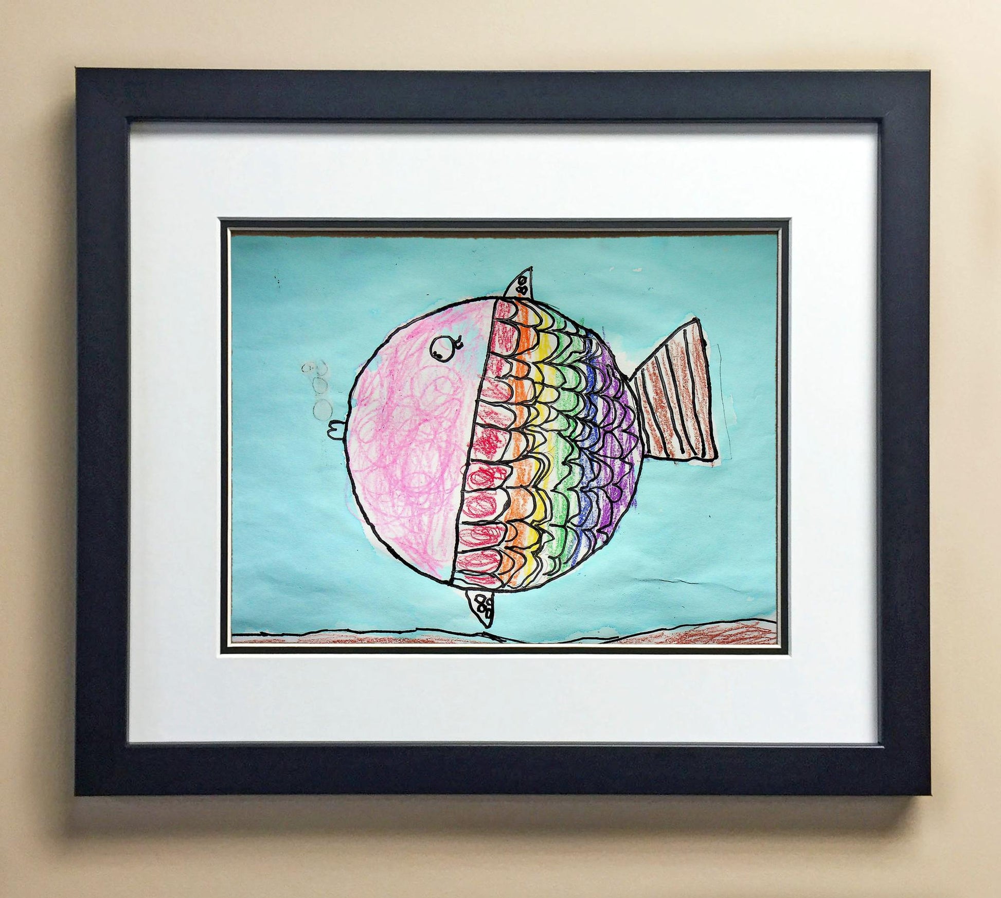 Included with the purchase is the Students Artwork, Frame, double matboard, shatter proof plexiglass, and a ready to hang backerboard with turnbuttons