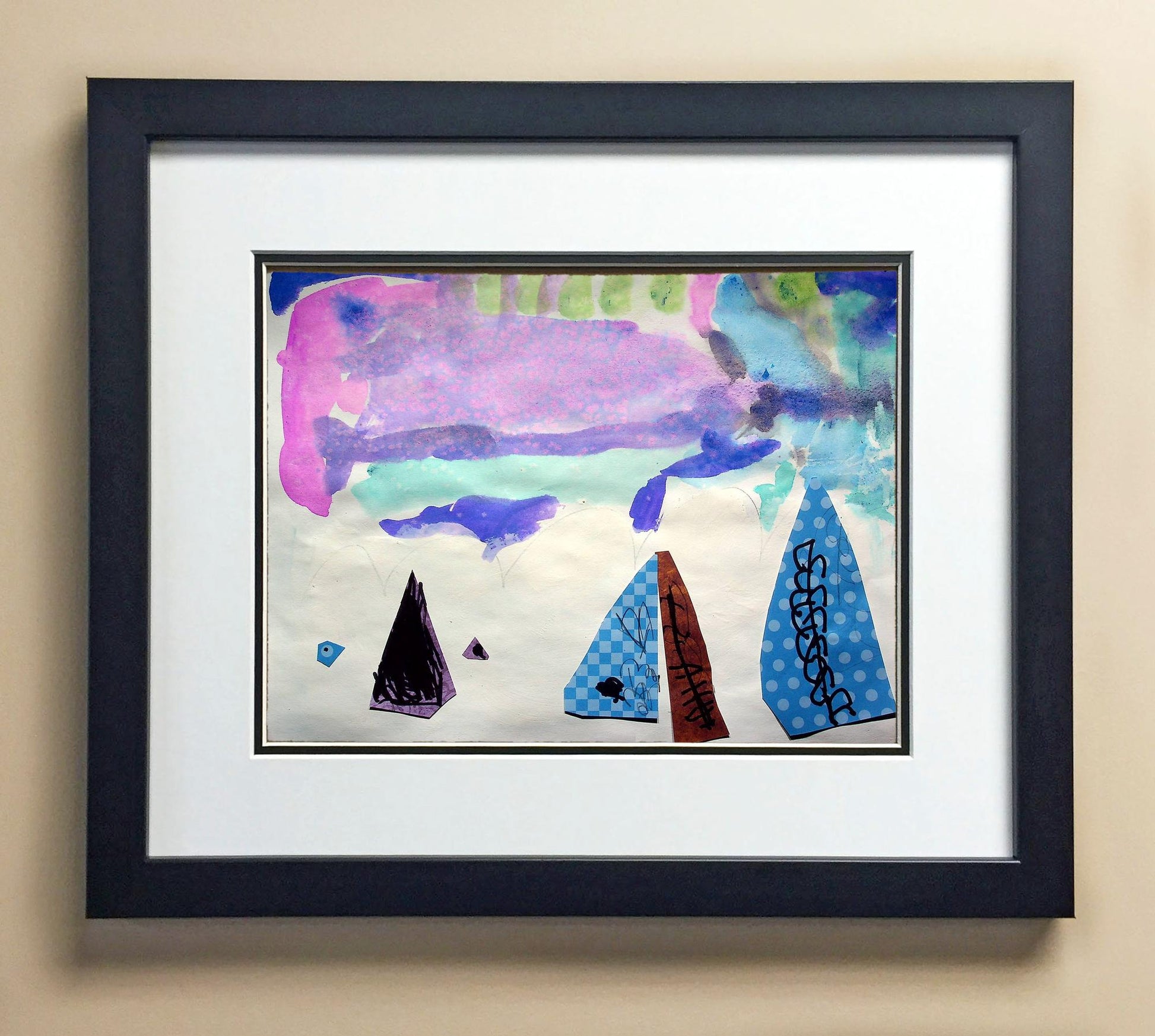 Included with the purchase is the Students Artwork, Frame, double matboard, shatter proof plexiglass, and a ready to hang backerboard with turnbuttons