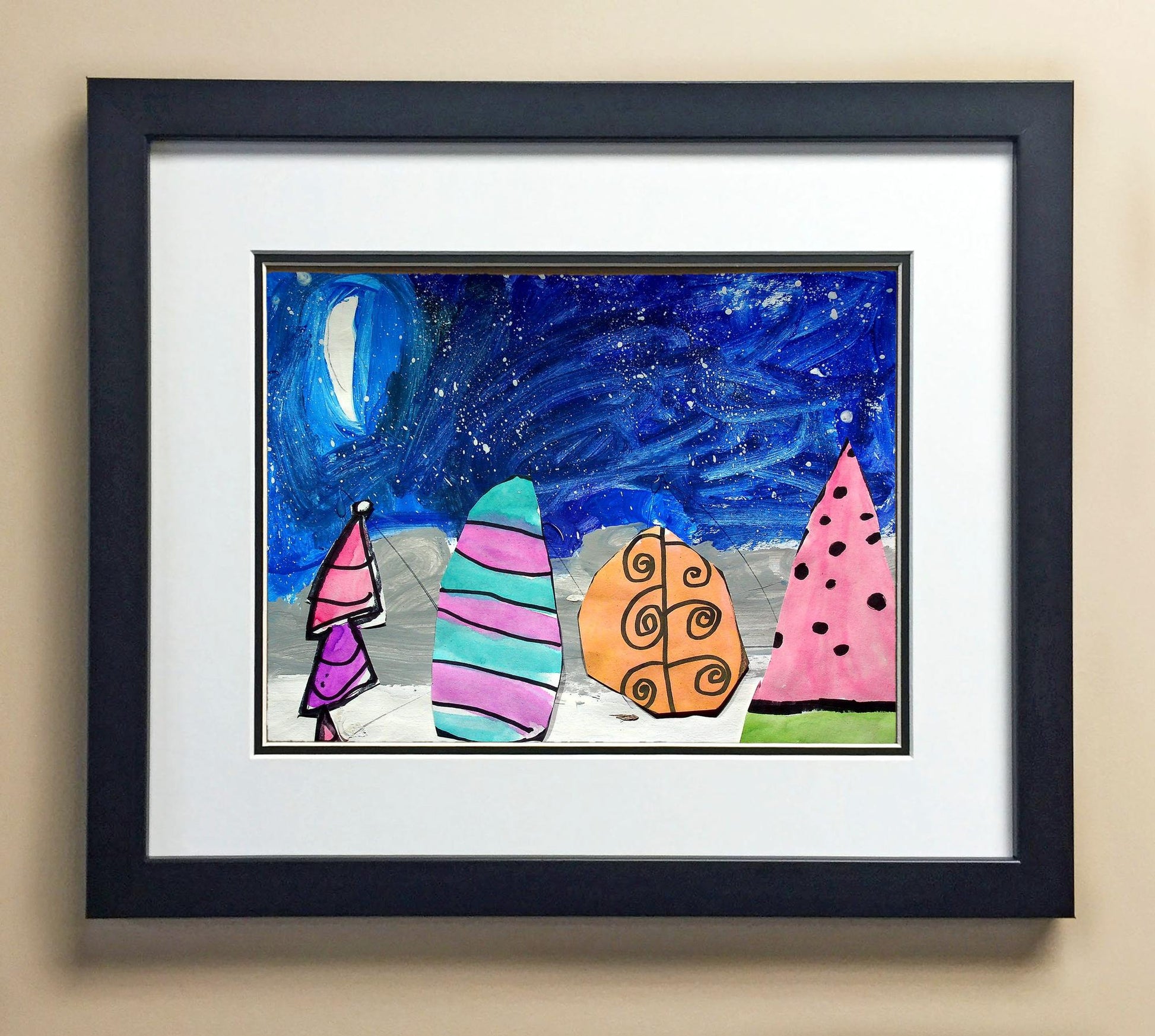 Included with the purchase is the Students Artwork, Frame, double matboard, shatter proof plexiglass, and a ready to hang backerboard with turnbuttons