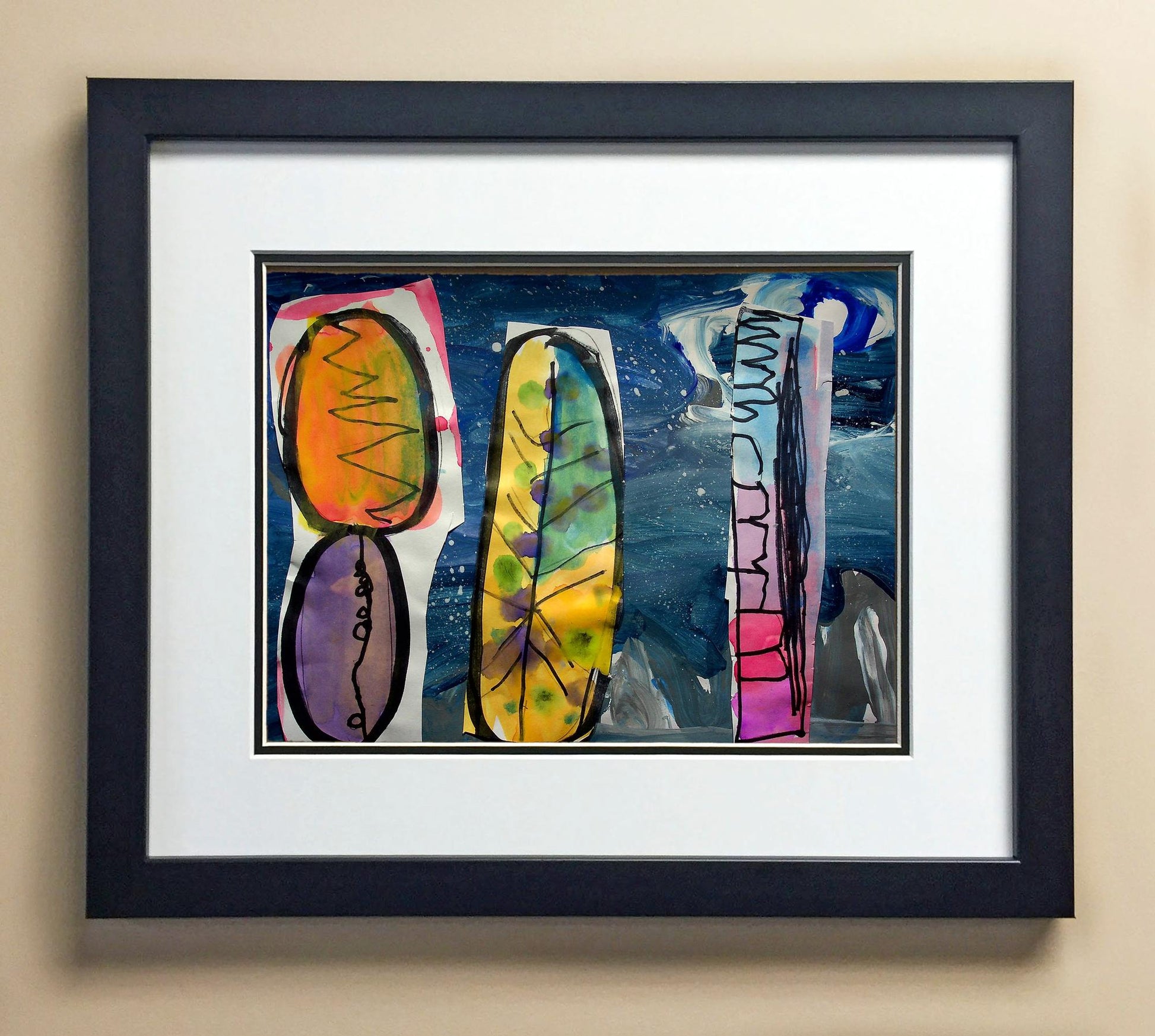 Included with the purchase is the Students Artwork, Frame, double matboard, shatter proof plexiglass, and a ready to hang backerboard with turnbuttons