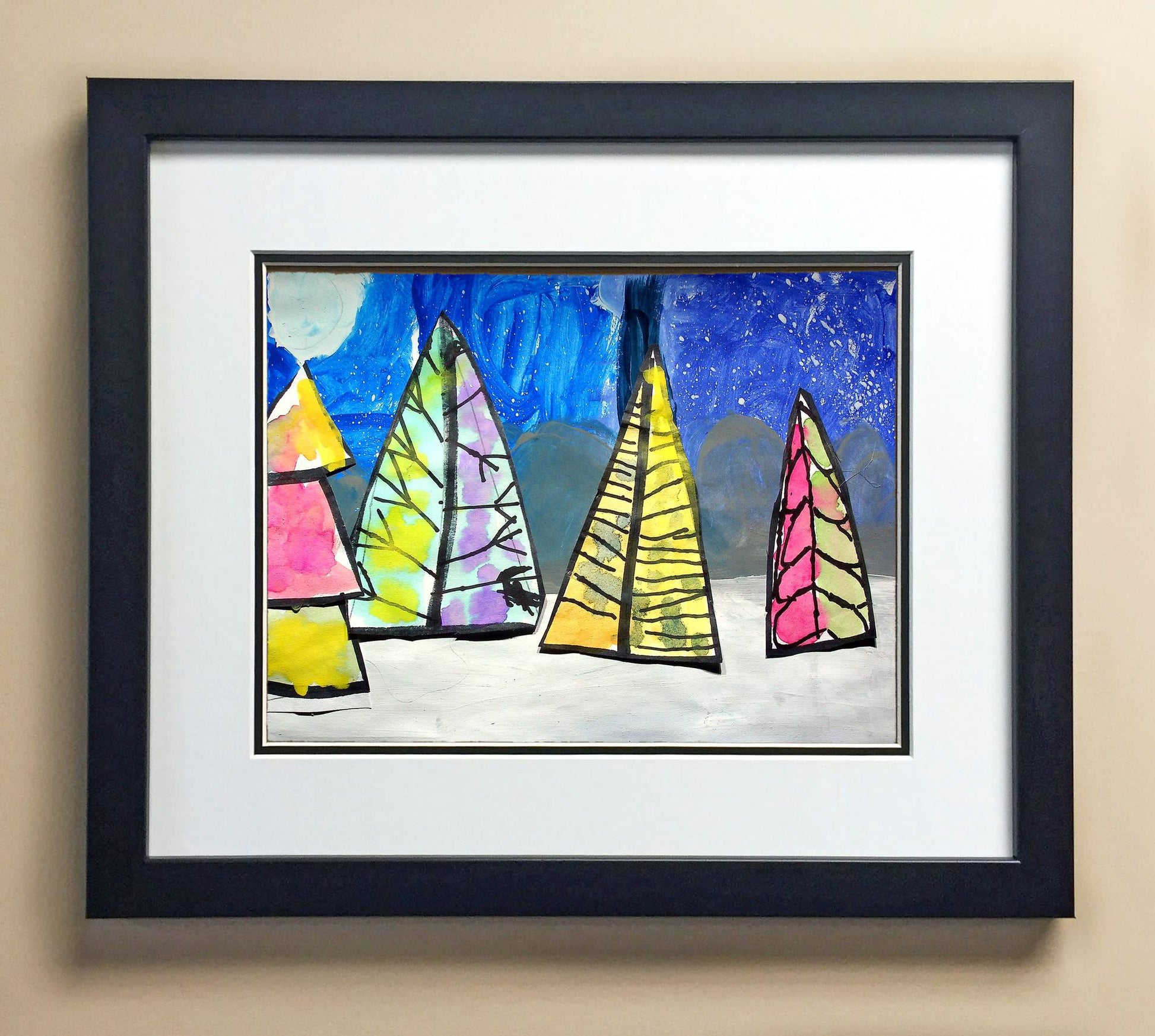 Included with the purchase is the Students Artwork, Frame, double matboard, shatter proof plexiglass, and a ready to hang backerboard with turnbuttons