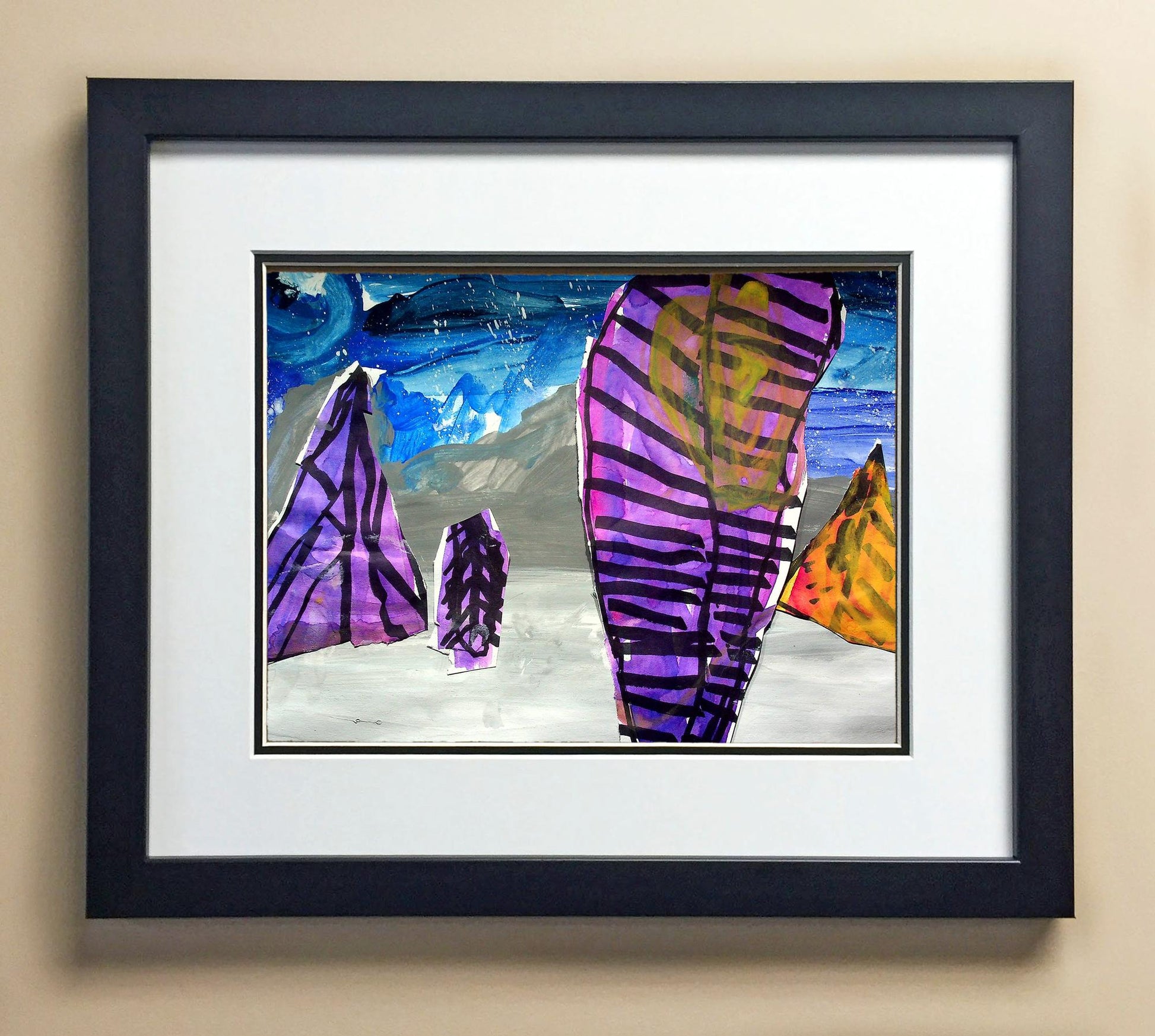 Included with the purchase is the Students Artwork, Frame, double matboard, shatter proof plexiglass, and a ready to hang backerboard with turnbuttons