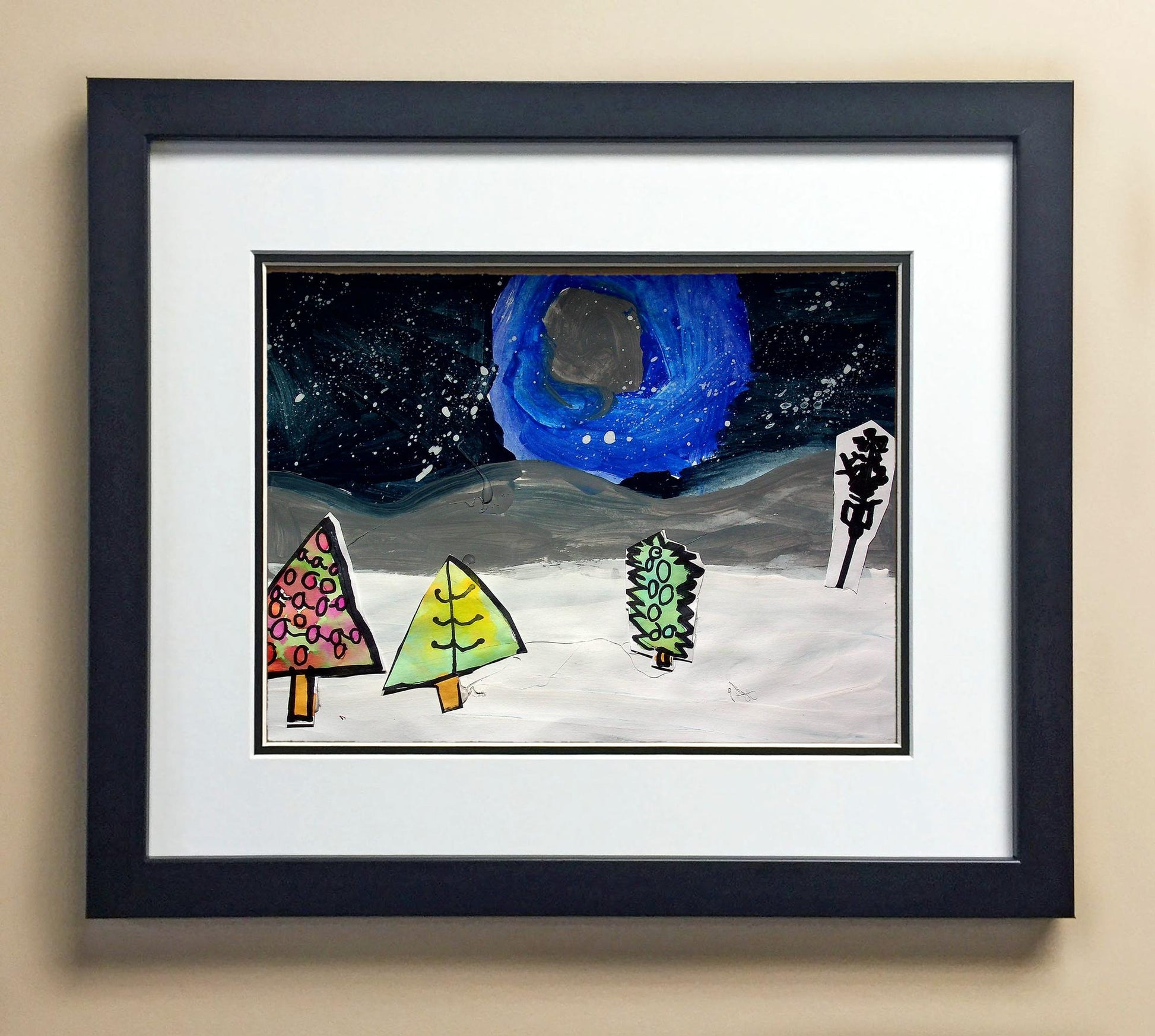 Included with the purchase is the Students Artwork, Frame, double matboard, shatter proof plexiglass, and a ready to hang backerboard with turnbuttons
