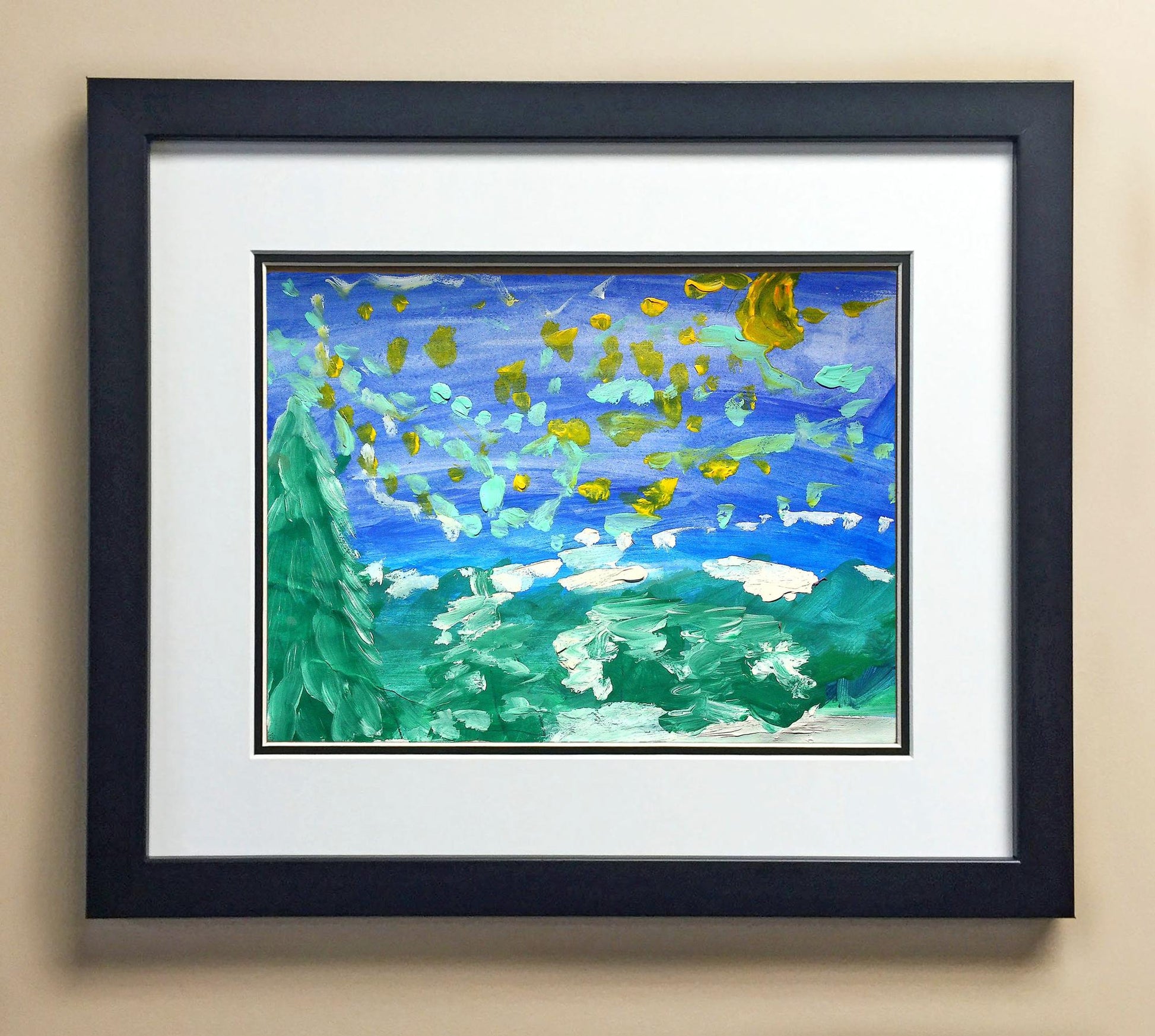 Included with the purchase is the Students Artwork, Frame, double matboard, shatter proof plexiglass, and a ready to hang backerboard with turnbuttons