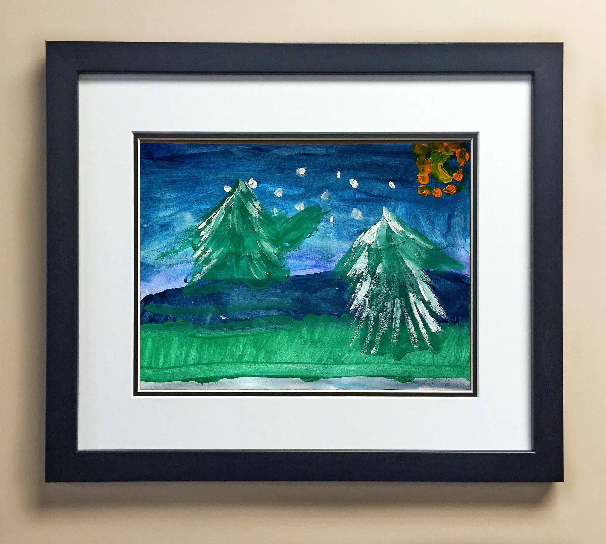 Included with the purchase is the Students Artwork, Frame, double matboard, shatter proof plexiglass, and a ready to hang backerboard with turnbuttons