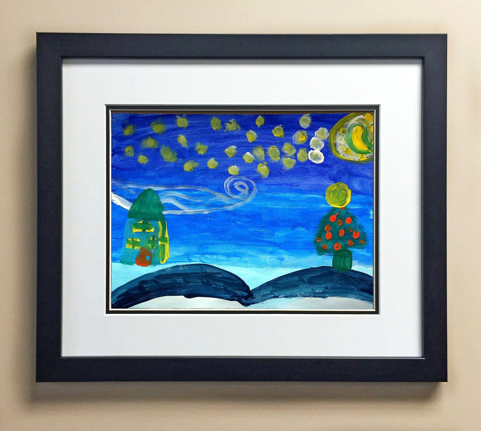 Included with the purchase is the Students Artwork, Frame, double matboard, shatter proof plexiglass, and a ready to hang backerboard with turnbuttons