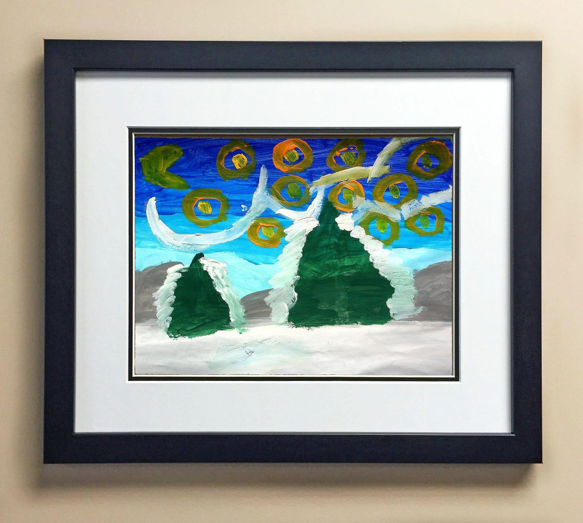 Included with the purchase is the Students Artwork, Frame, double matboard, shatter proof plexiglass, and a ready to hang backerboard with turnbuttons