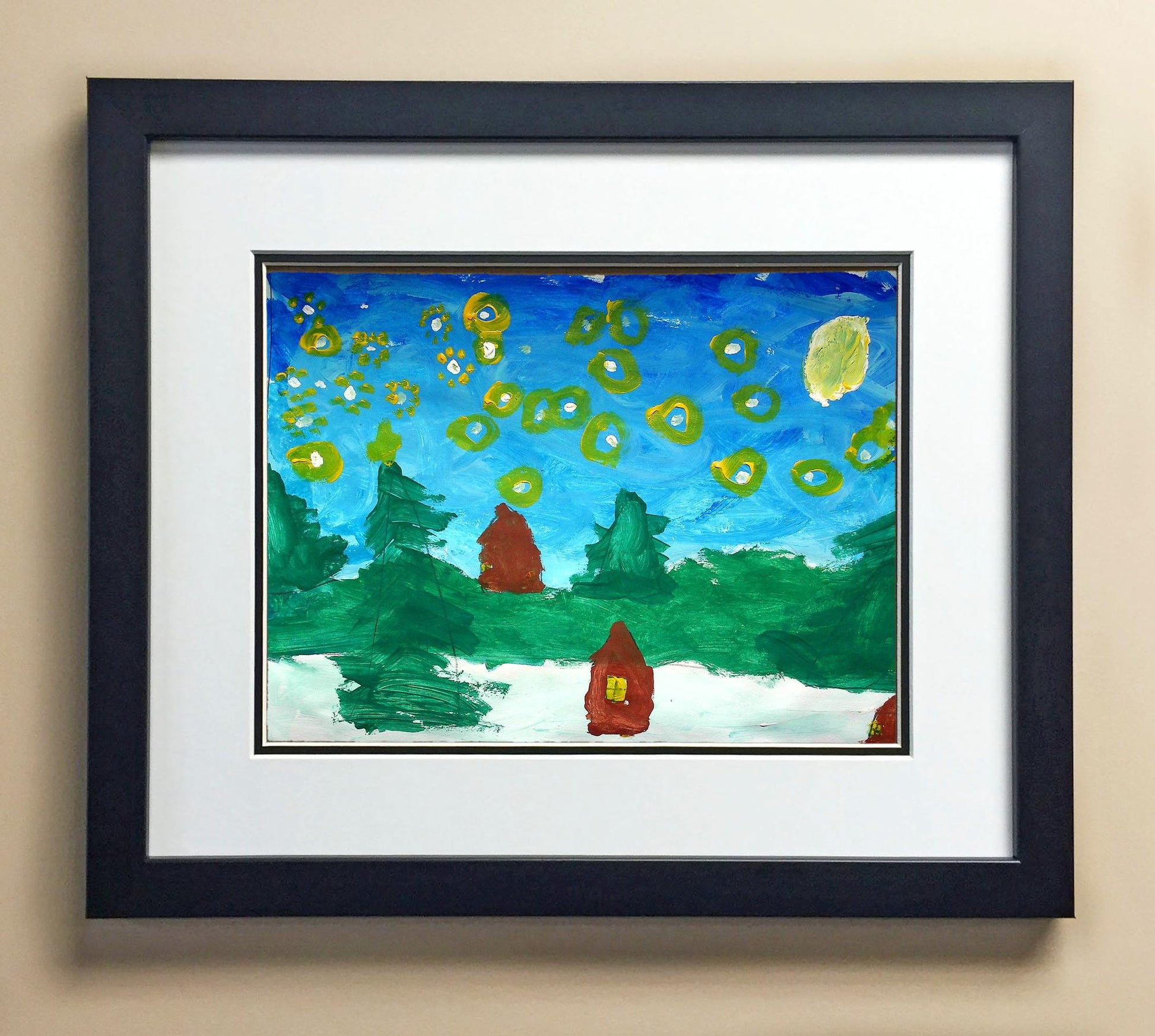 Included with the purchase is the Students Artwork, Frame, double matboard, shatter proof plexiglass, and a ready to hang backerboard with turnbuttons