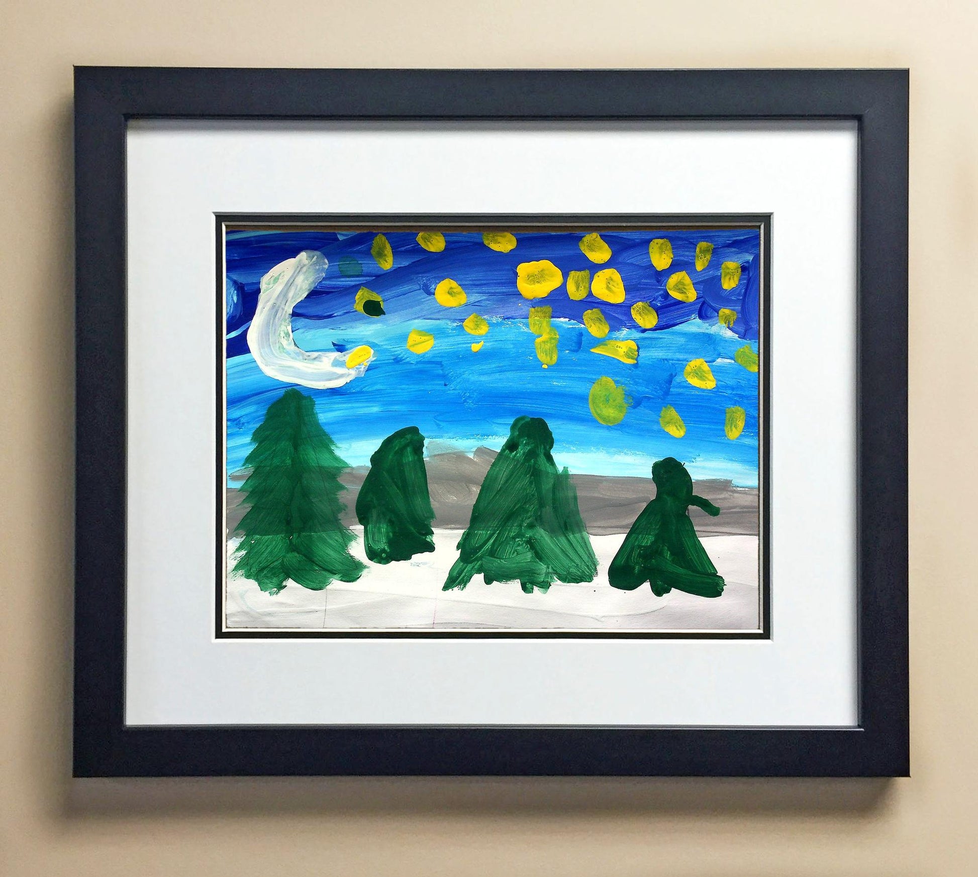 Included with the purchase is the Students Artwork, Frame, double matboard, shatter proof plexiglass, and a ready to hang backerboard with turnbuttons