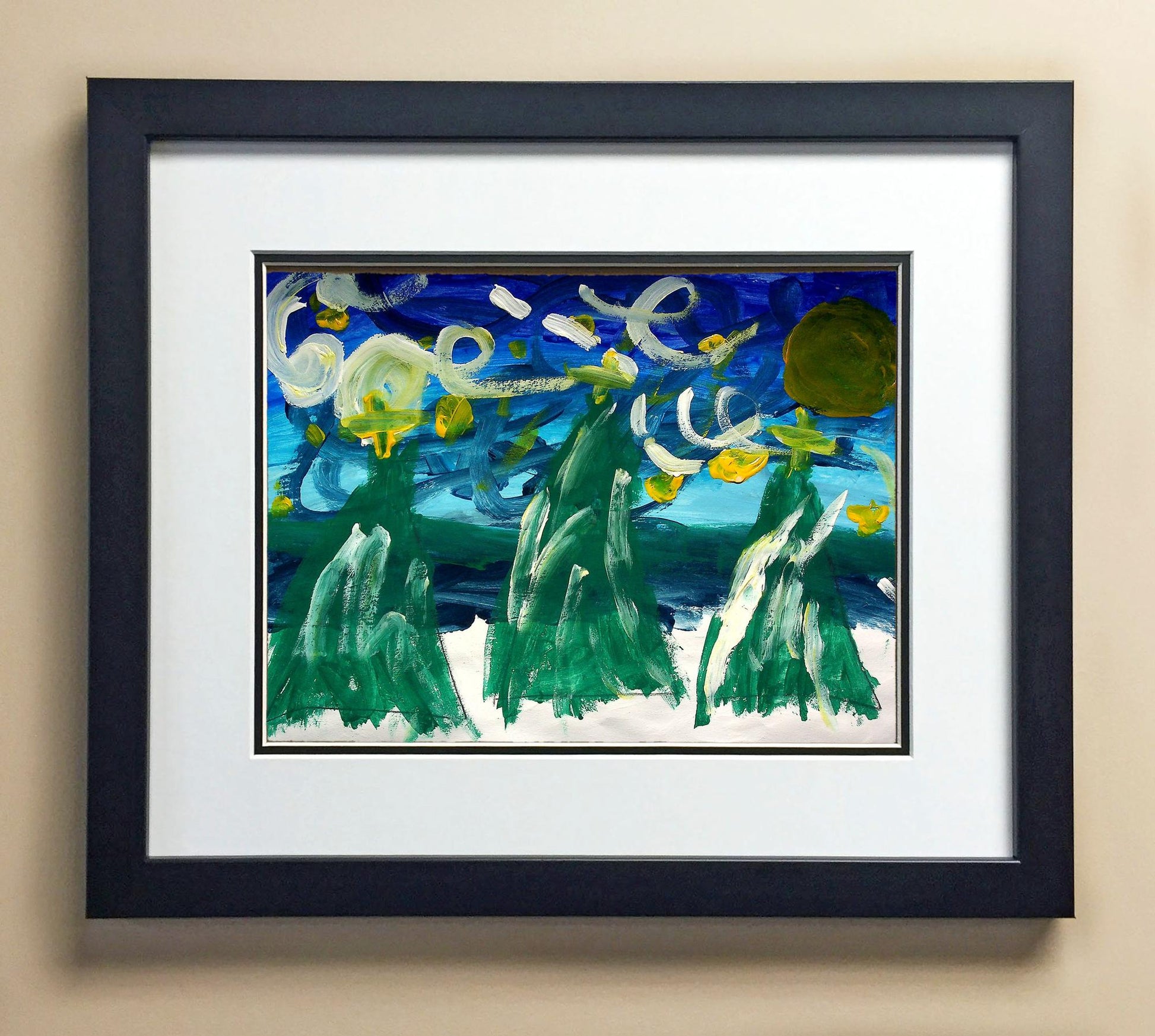 Included with the purchase is the Students Artwork, Frame, double matboard, shatter proof plexiglass, and a ready to hang backerboard with turnbuttons