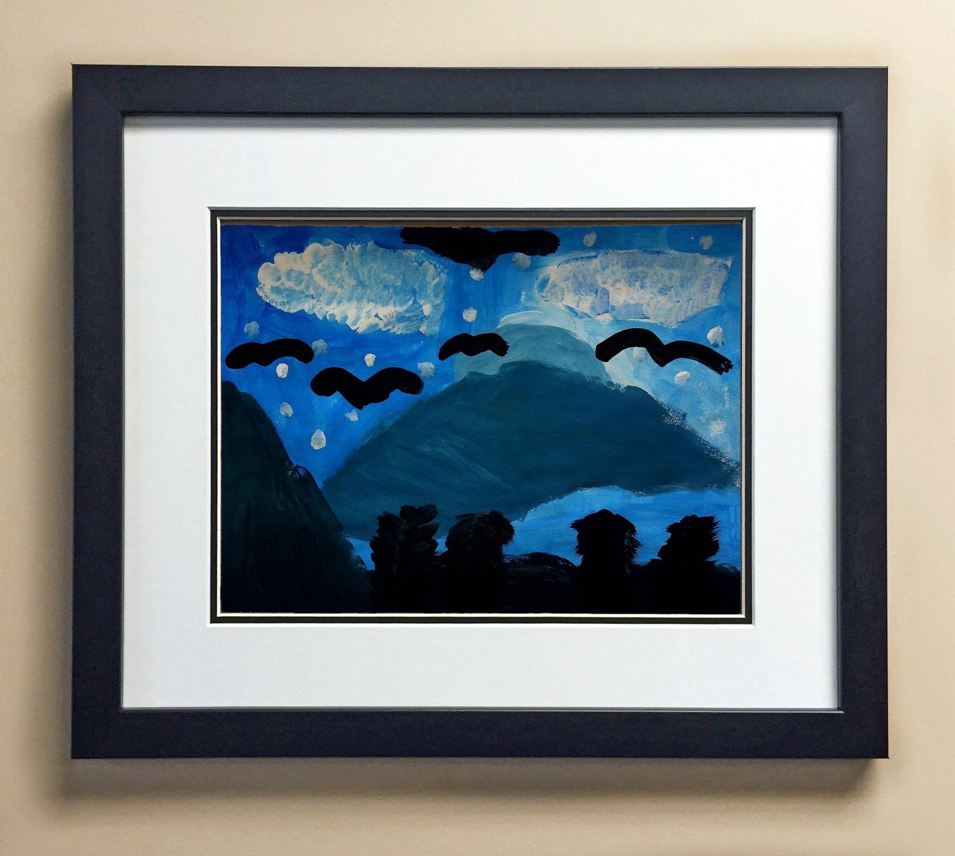 Included with the purchase is the Students Artwork, Frame, double matboard, shatter proof plexiglass, and a ready to hang backerboard with turnbuttons