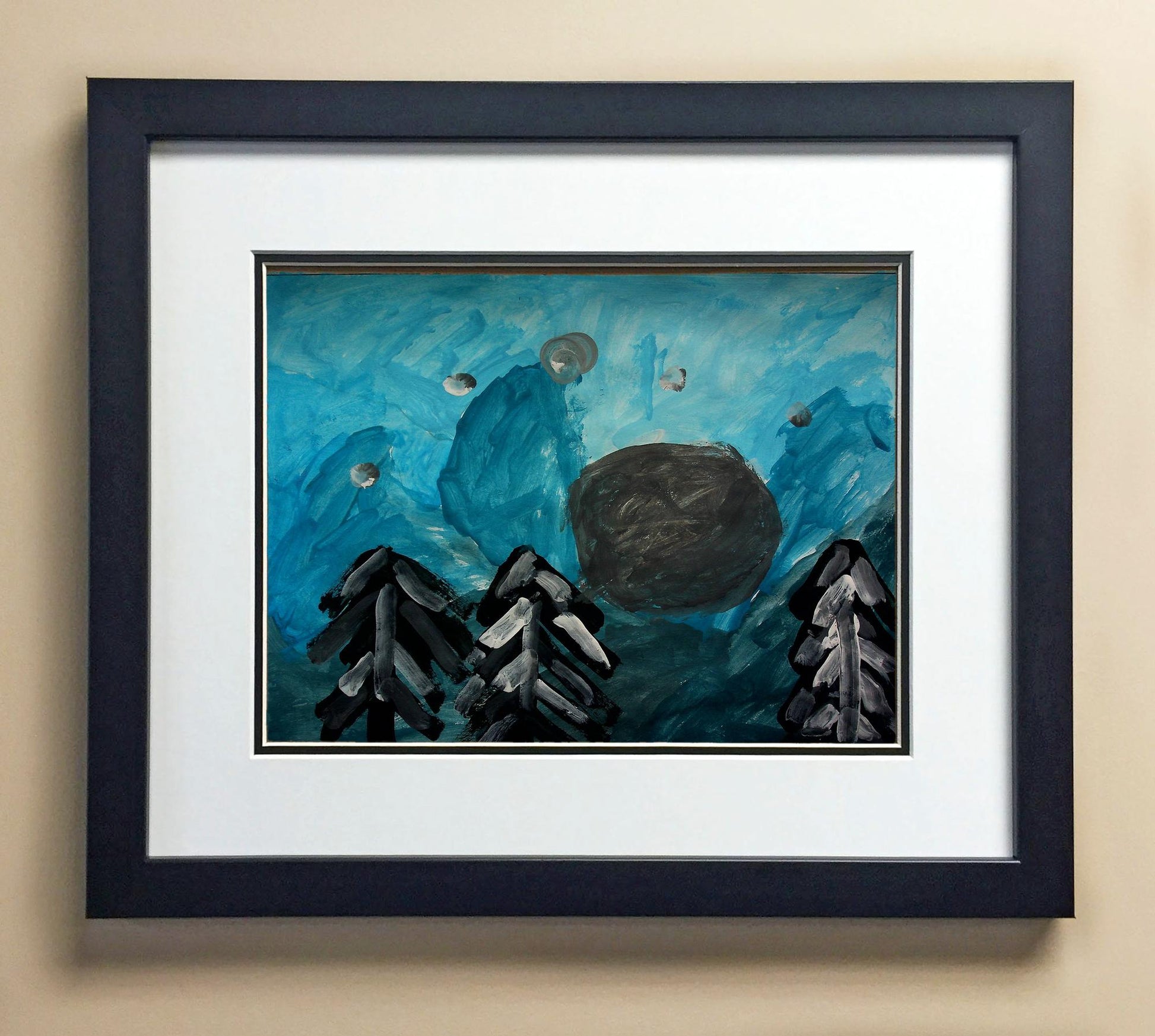Included with the purchase is the Students Artwork, Frame, double matboard, shatter proof plexiglass, and a ready to hang backerboard with turnbuttons