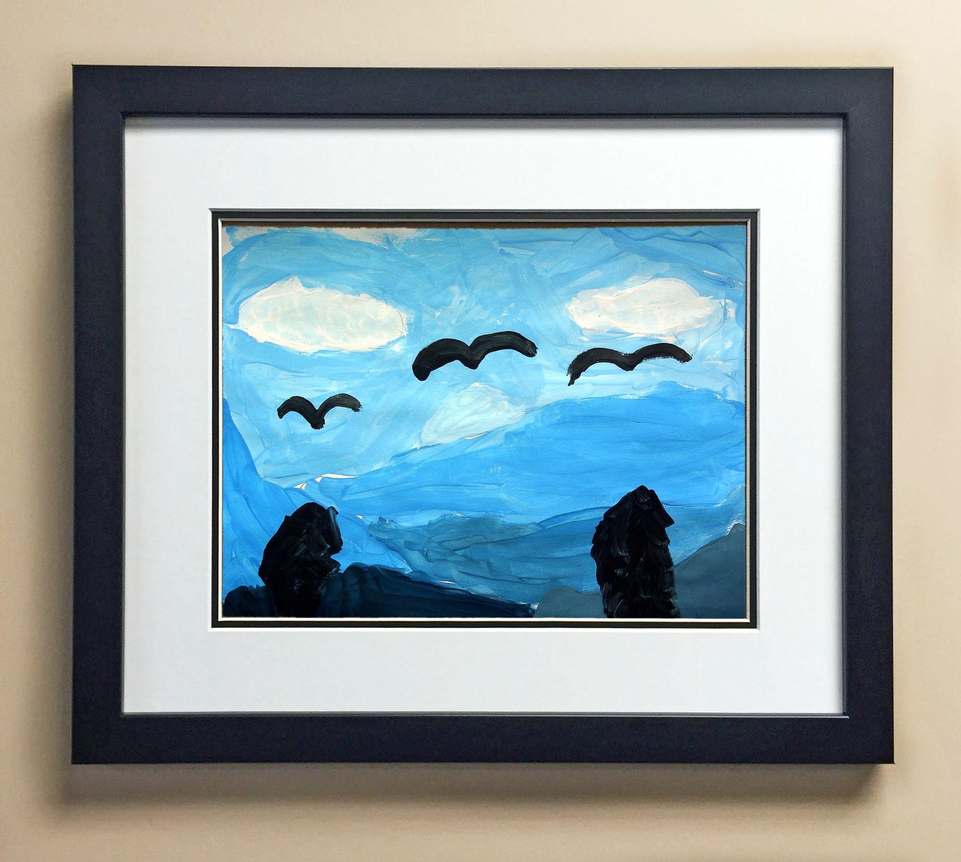 Included with the purchase is the Students Artwork, Frame, double matboard, shatter proof plexiglass, and a ready to hang backerboard with turnbuttons