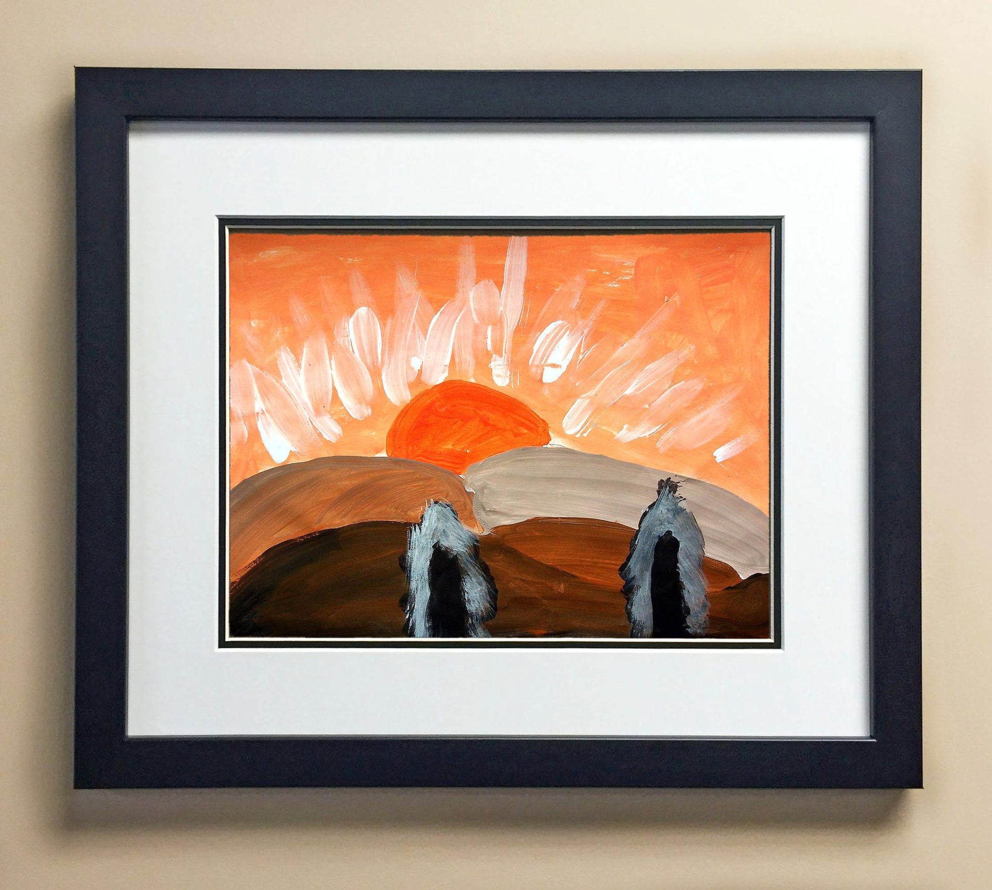 Included with the purchase is the Students Artwork, Frame, double matboard, shatter proof plexiglass, and a ready to hang backerboard with turnbuttons