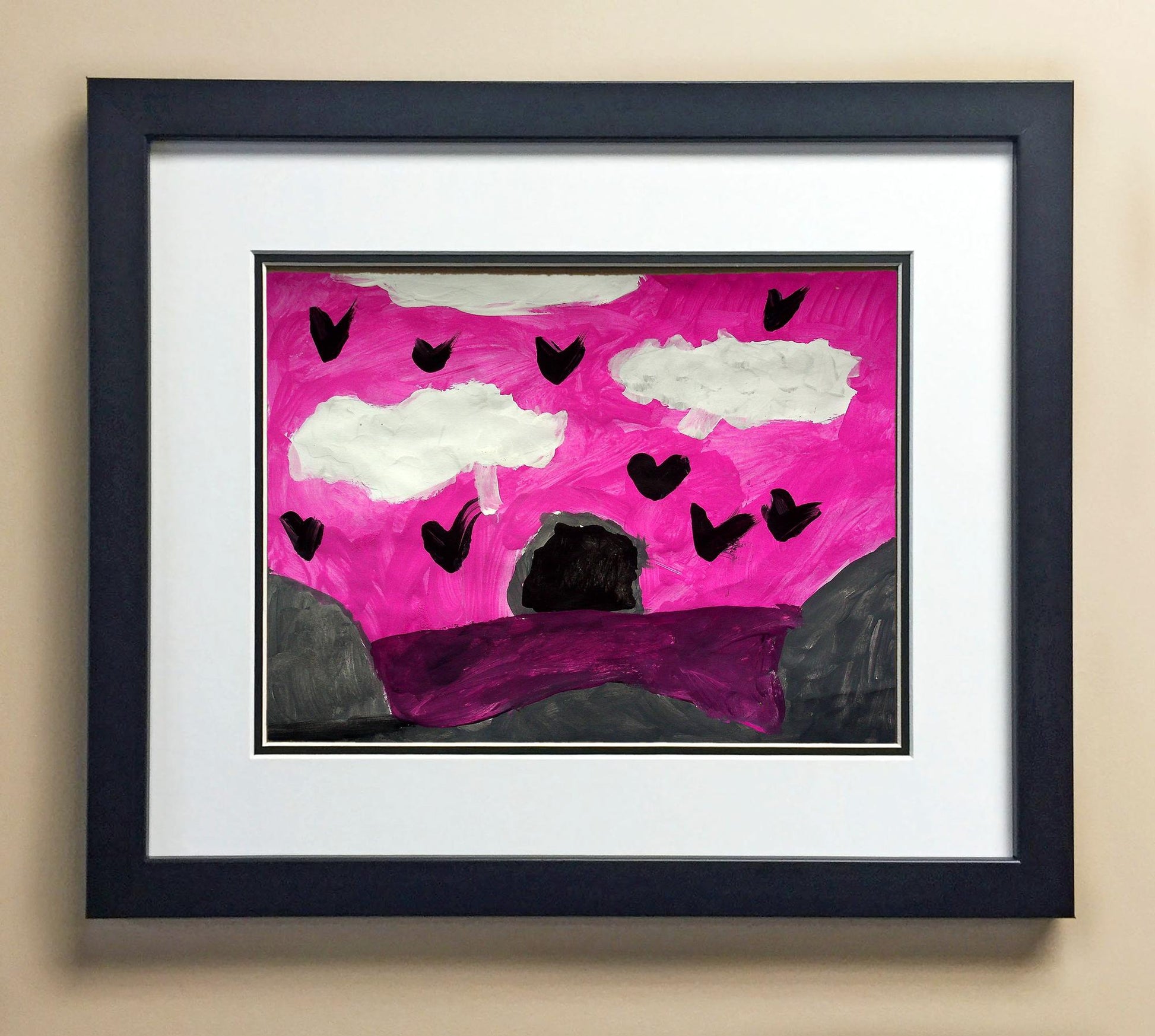 Included with the purchase is the Students Artwork, Frame, double matboard, shatter proof plexiglass, and a ready to hang backerboard with turnbuttons