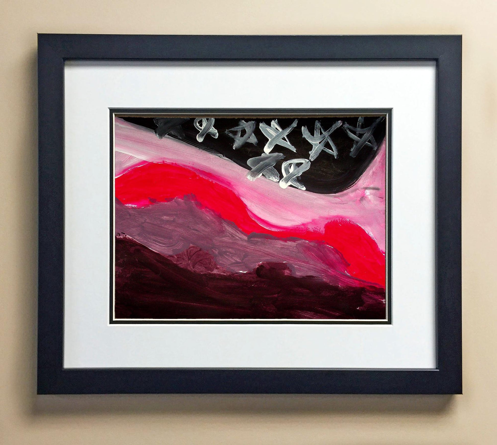 Included with the purchase is the Students Artwork, Frame, double matboard, shatter proof plexiglass, and a ready to hang backerboard with turnbuttons