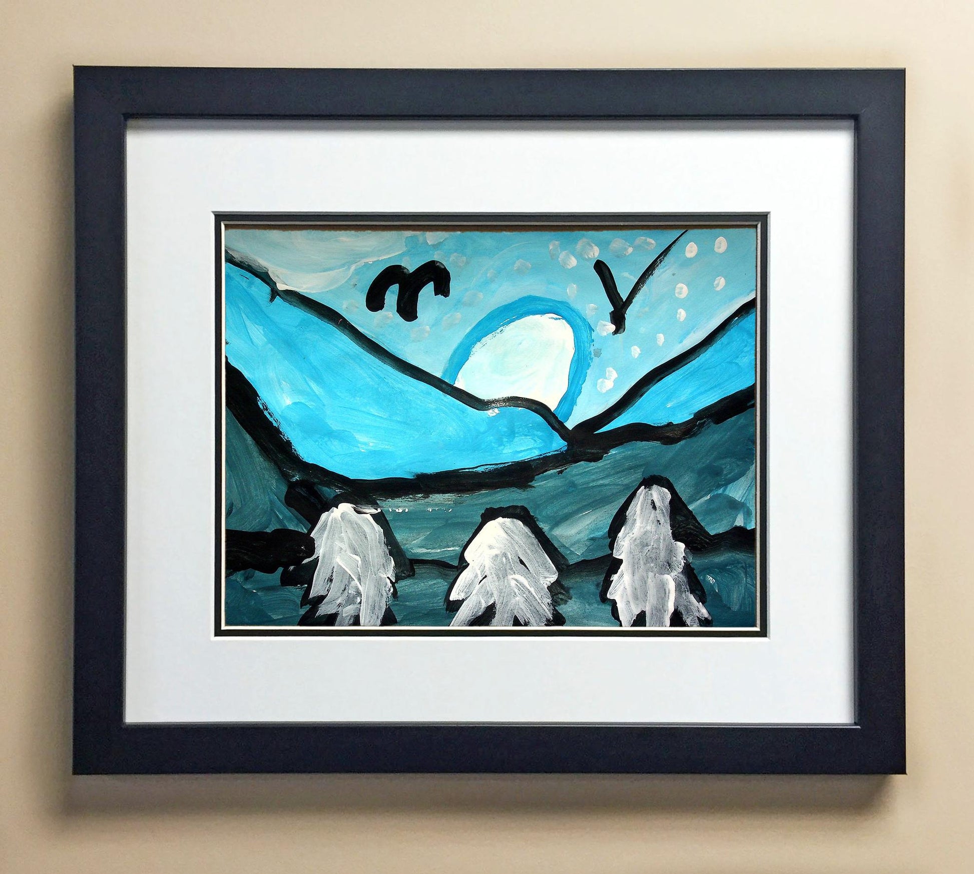 Included with the purchase is the Students Artwork, Frame, double matboard, shatter proof plexiglass, and a ready to hang backerboard with turnbuttons