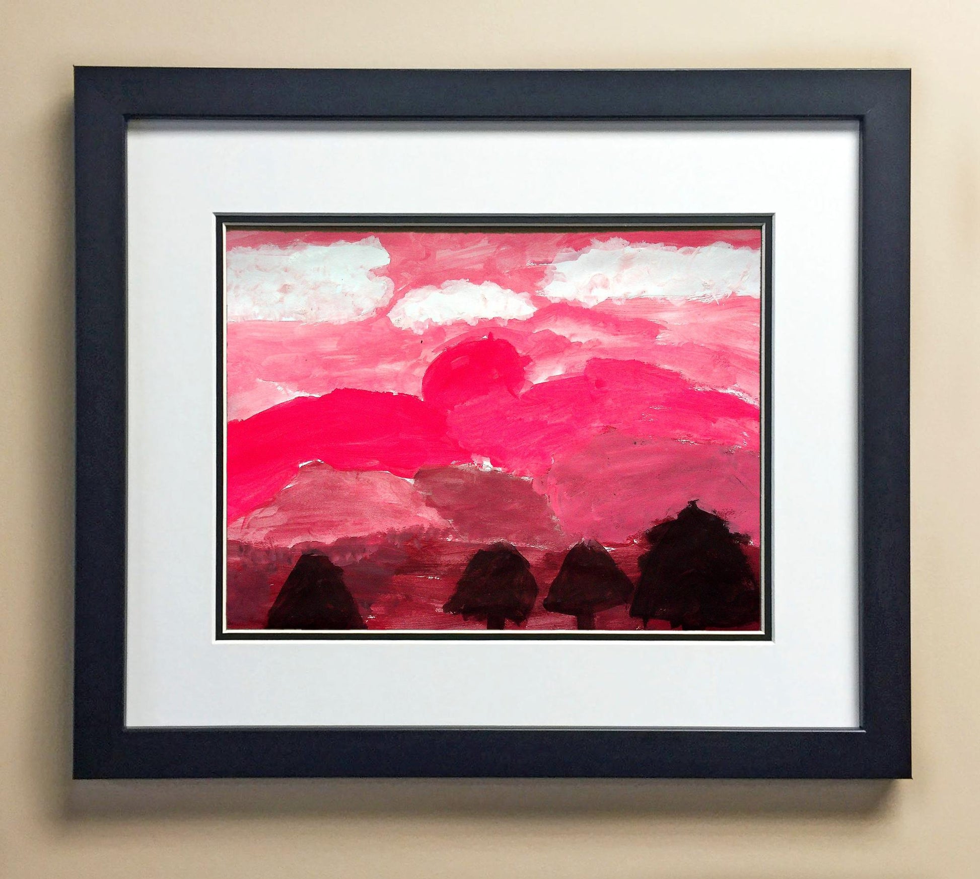 Included with the purchase is the Students Artwork, Frame, double matboard, shatter proof plexiglass, and a ready to hang backerboard with turnbuttons