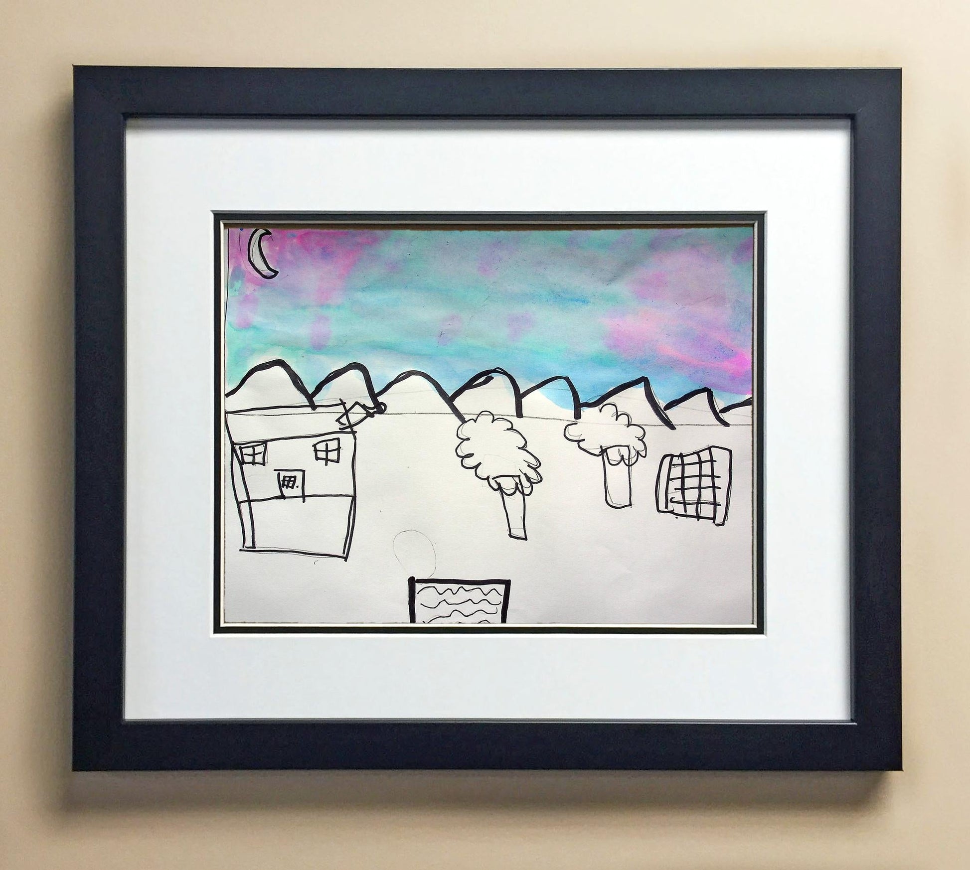 Included with the purchase is the Students Artwork, Frame, double matboard, shatter proof plexiglass, and a ready to hang backerboard with turnbuttons