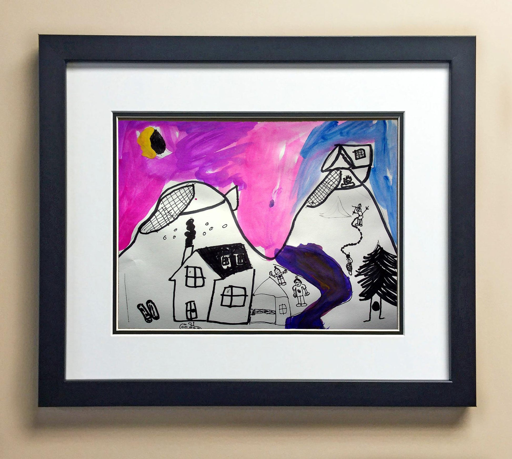 Included with the purchase is the Students Artwork, Frame, double matboard, shatter proof plexiglass, and a ready to hang backerboard with turnbuttons