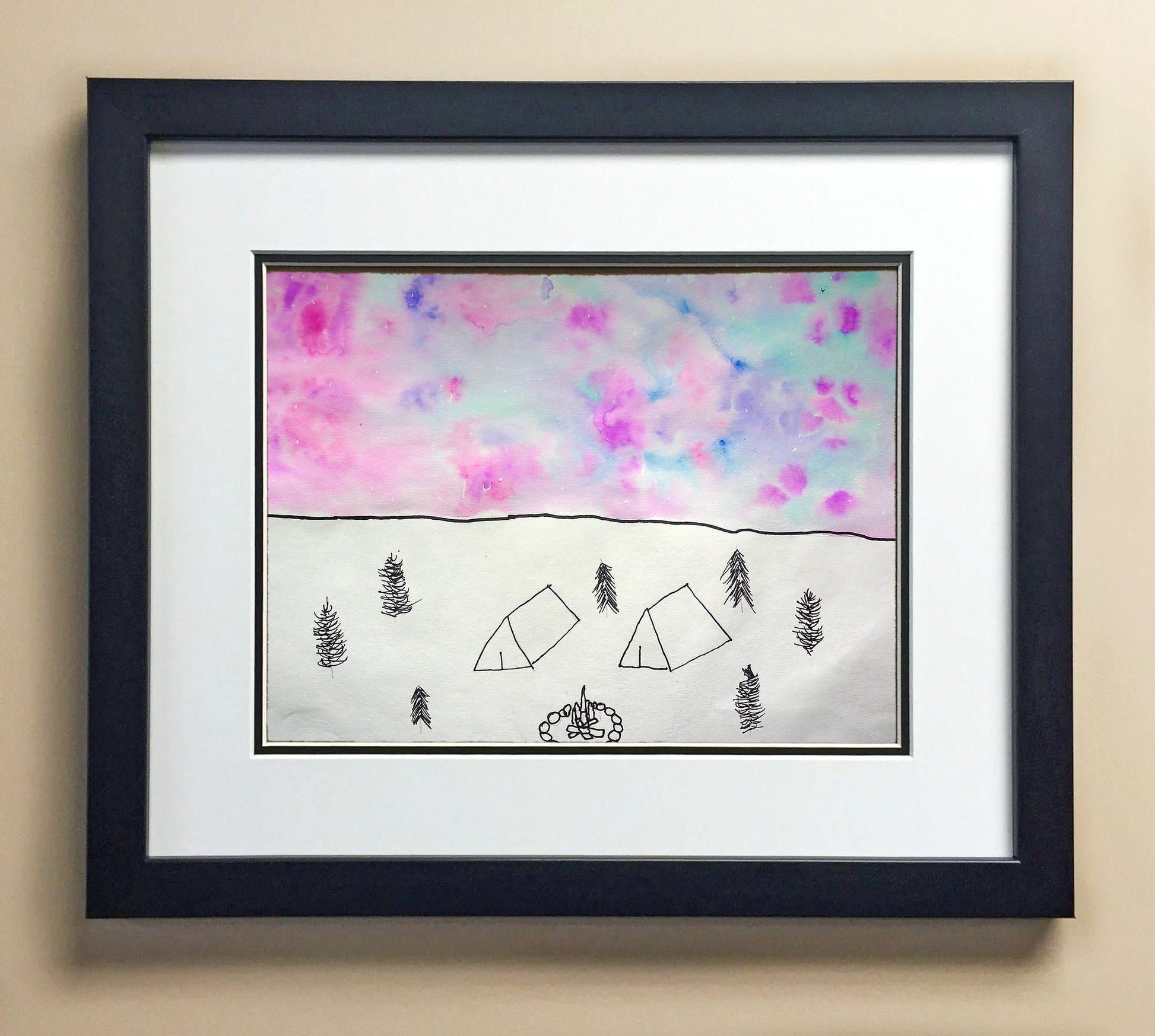 Included with the purchase is the Students Artwork, Frame, double matboard, shatter proof plexiglass, and a ready to hang backerboard with turnbuttons