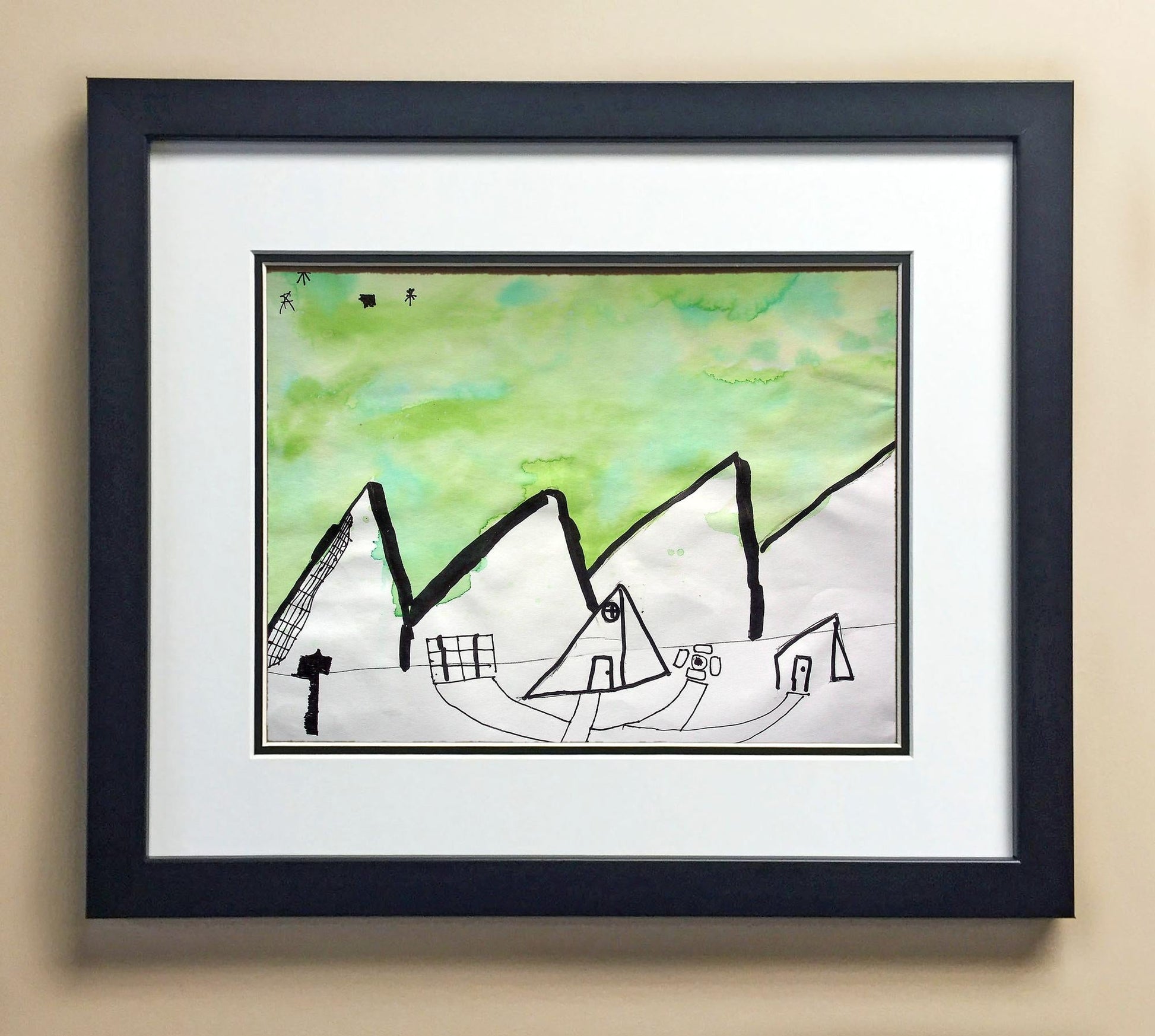 Included with the purchase is the Students Artwork, Frame, double matboard, shatter proof plexiglass, and a ready to hang backerboard with turnbuttons