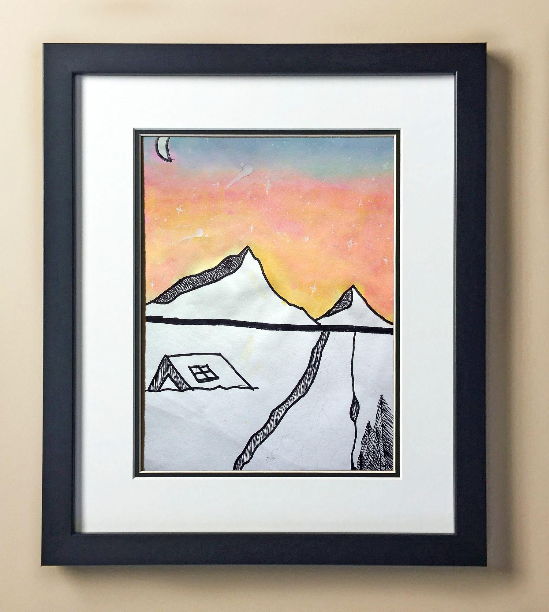 Included with the purchase is the Students Artwork, Frame, double matboard, shatter proof plexiglass, and a ready to hang backerboard with turnbuttons