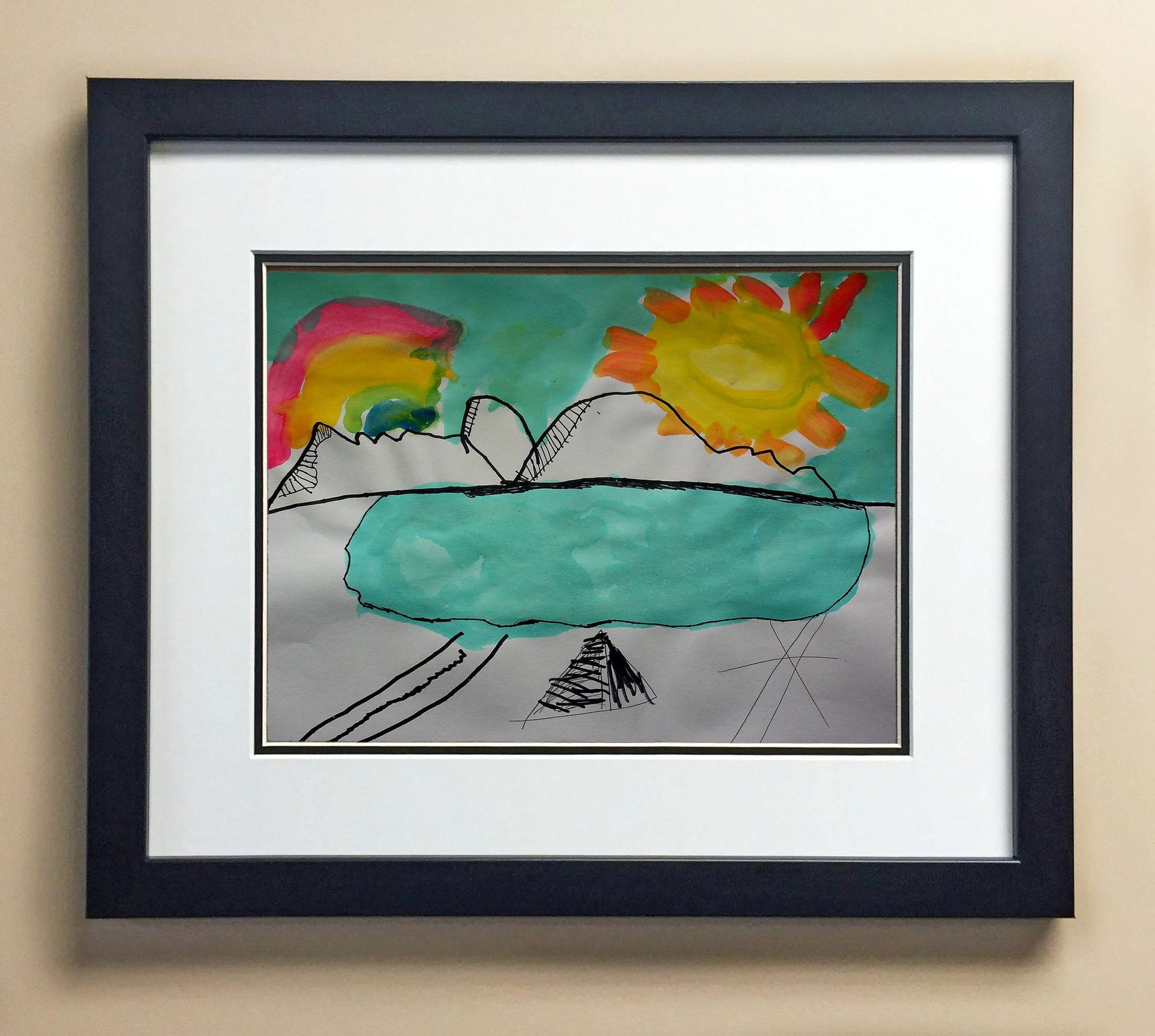 Included with the purchase is the Students Artwork, Frame, double matboard, shatter proof plexiglass, and a ready to hang backerboard with turnbuttons