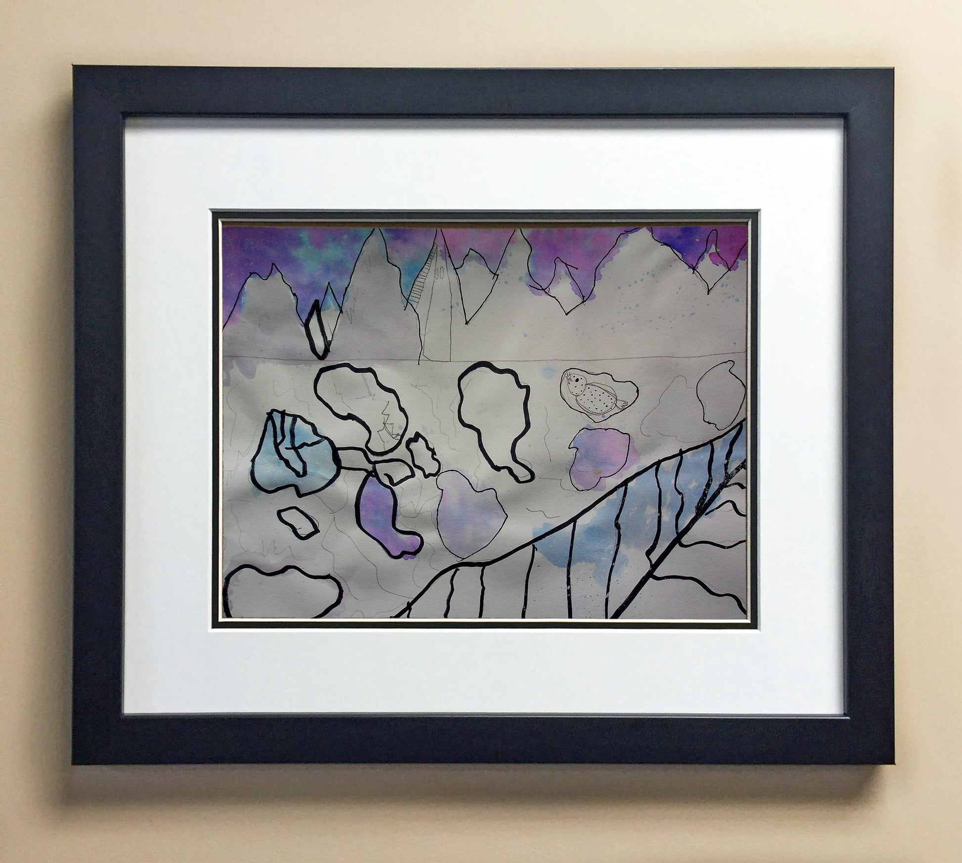 Included with the purchase is the Students Artwork, Frame, double matboard, shatter proof plexiglass, and a ready to hang backerboard with turnbuttons