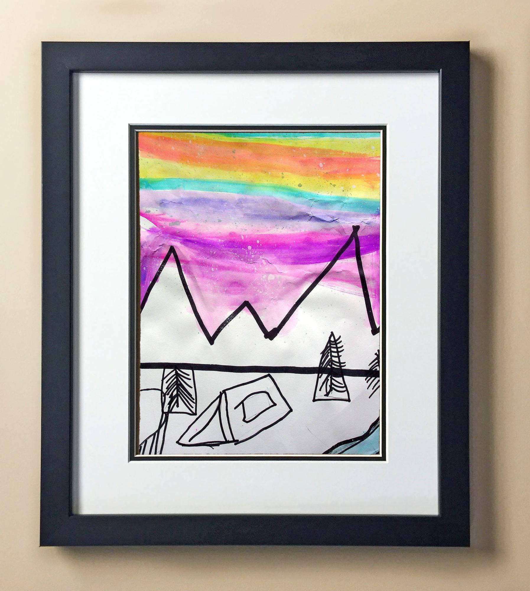 Included with the purchase is the Students Artwork, Frame, double matboard, shatter proof plexiglass, and a ready to hang backerboard with turnbuttons