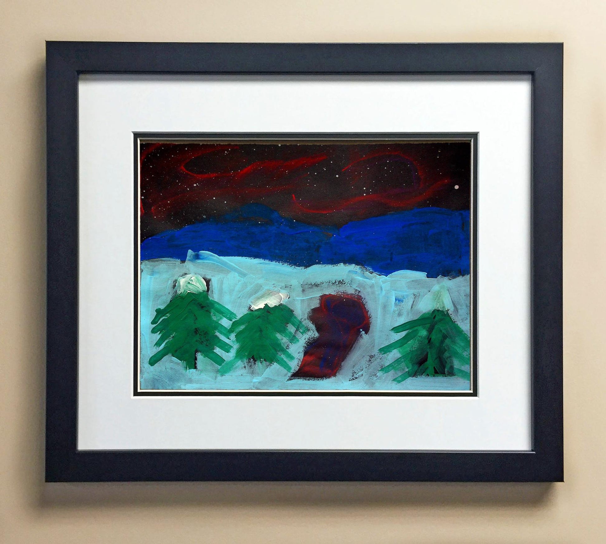 Included with the purchase is the Students Artwork, Frame, double matboard, shatter proof plexiglass, and a ready to hang backerboard with turnbuttons