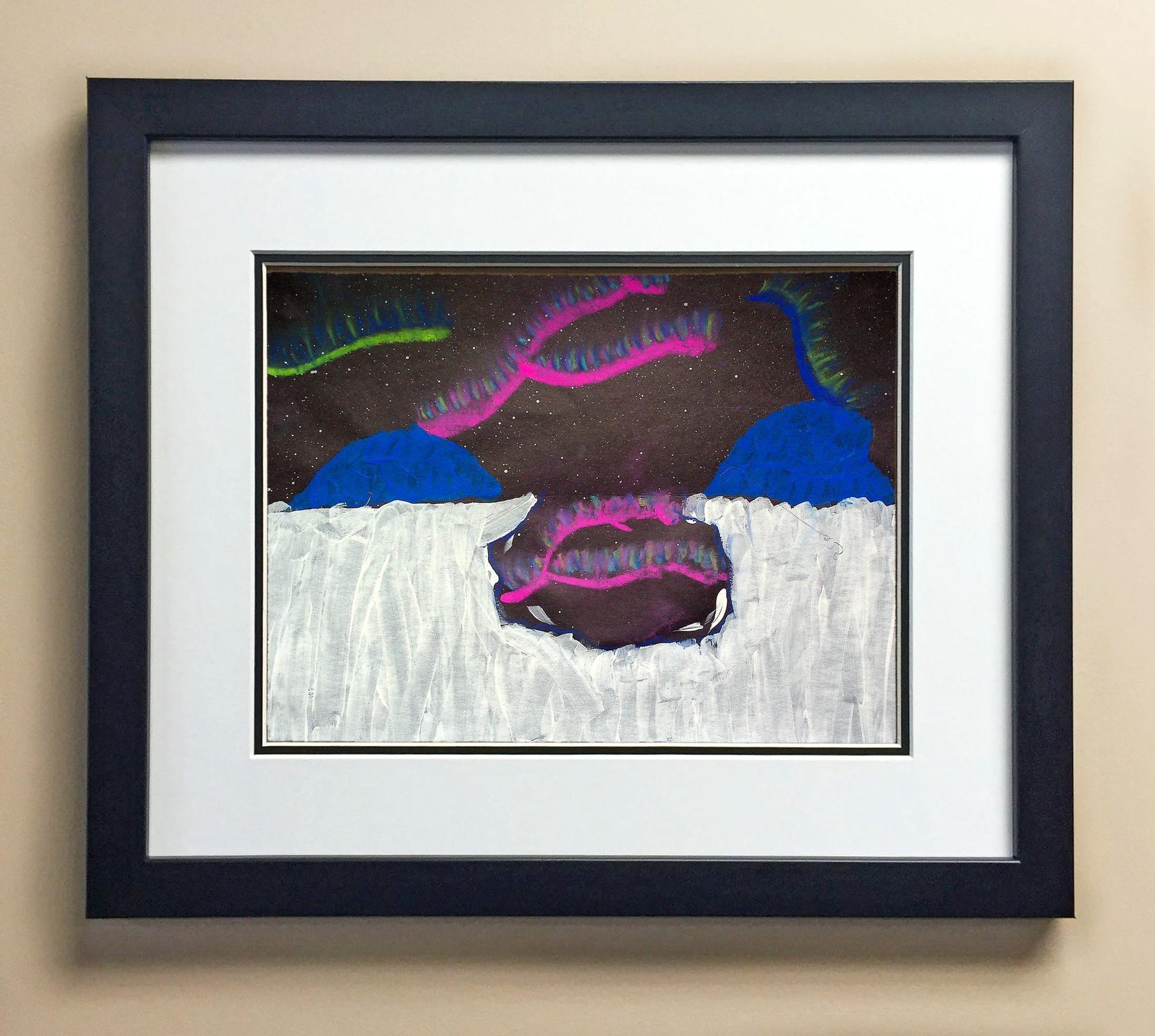 Included with the purchase is the Students Artwork, Frame, double matboard, shatter proof plexiglass, and a ready to hang backerboard with turnbuttons