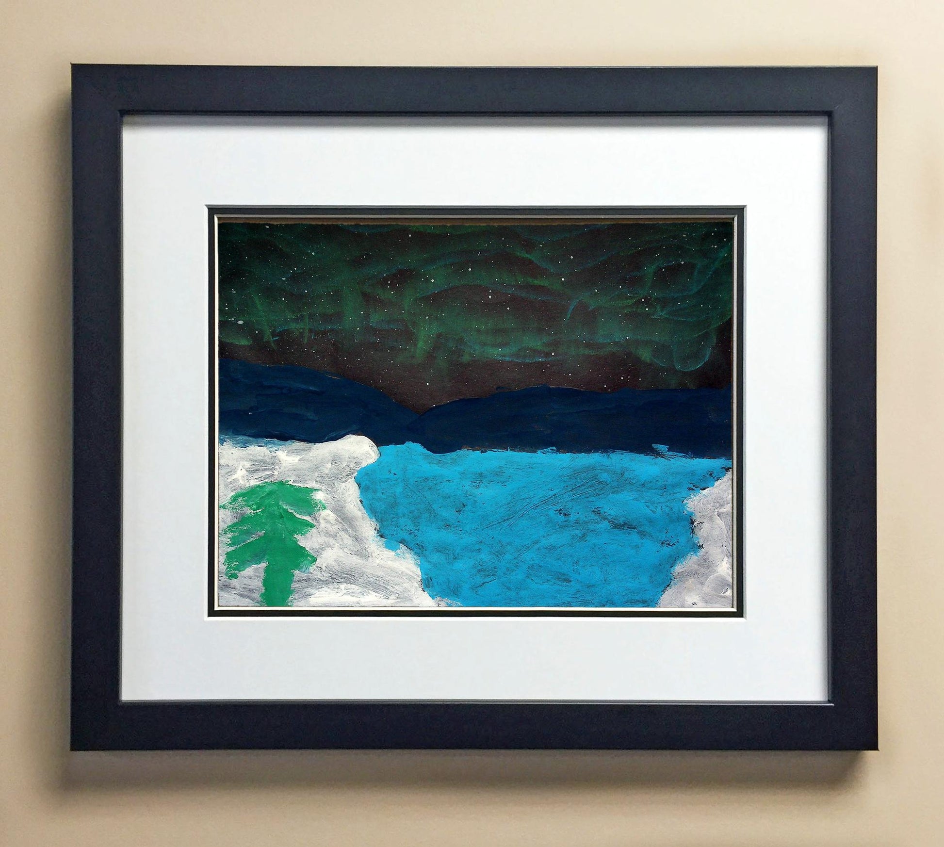 Included with the purchase is the Students Artwork, Frame, double matboard, shatter proof plexiglass, and a ready to hang backerboard with turnbuttons