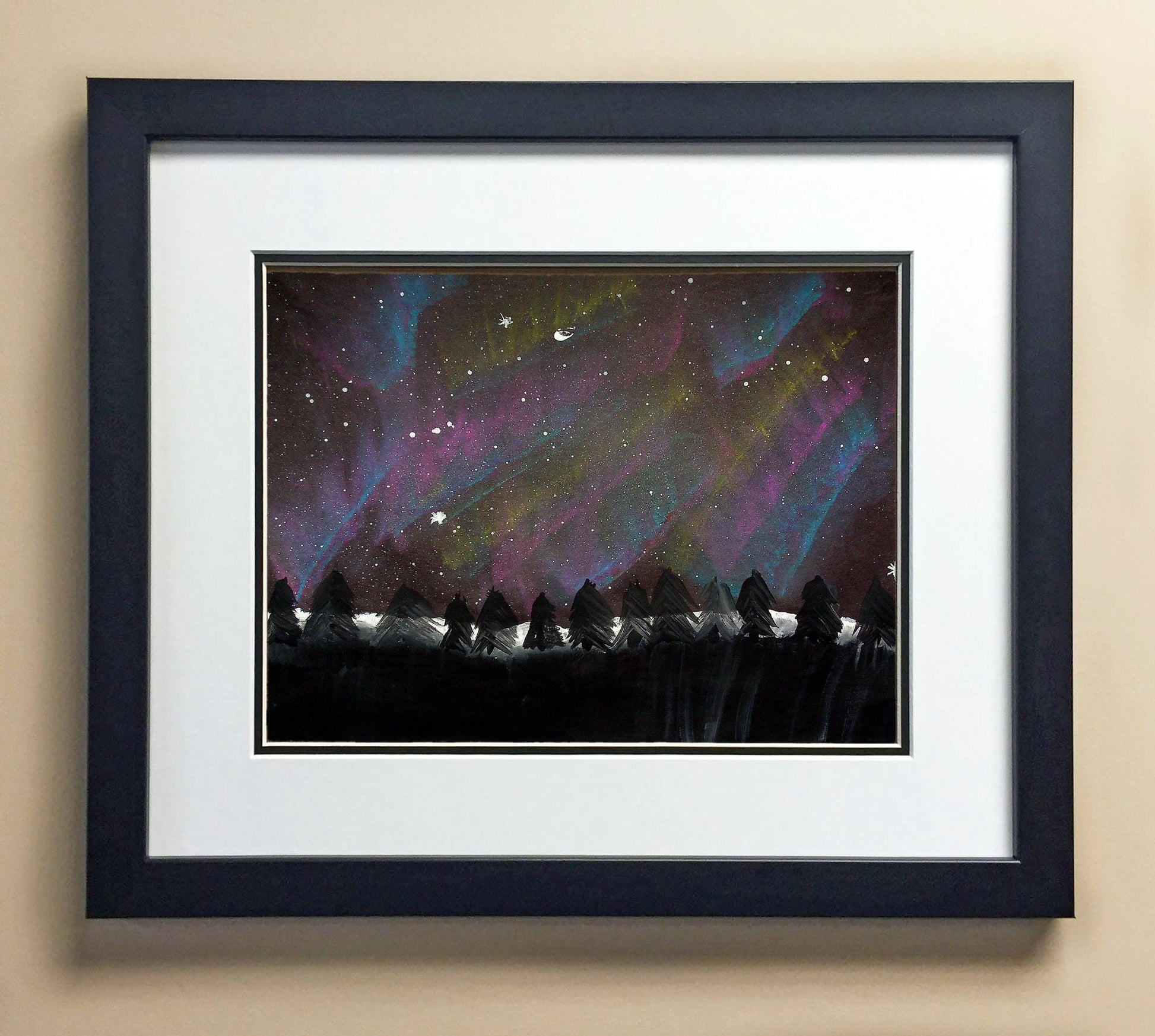 Included with the purchase is the Students Artwork, Frame, double matboard, shatter proof plexiglass, and a ready to hang backerboard with turnbuttons