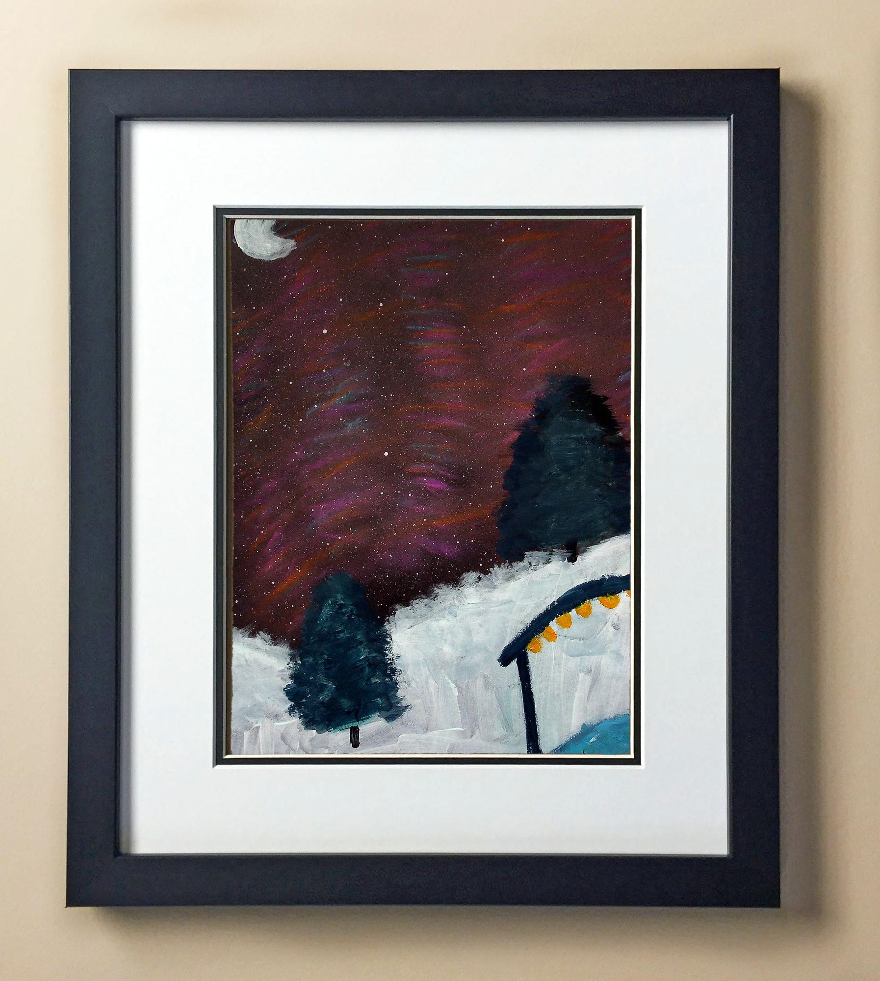 Included with the purchase is the Students Artwork, Frame, double matboard, shatter proof plexiglass, and a ready to hang backerboard with turnbuttons