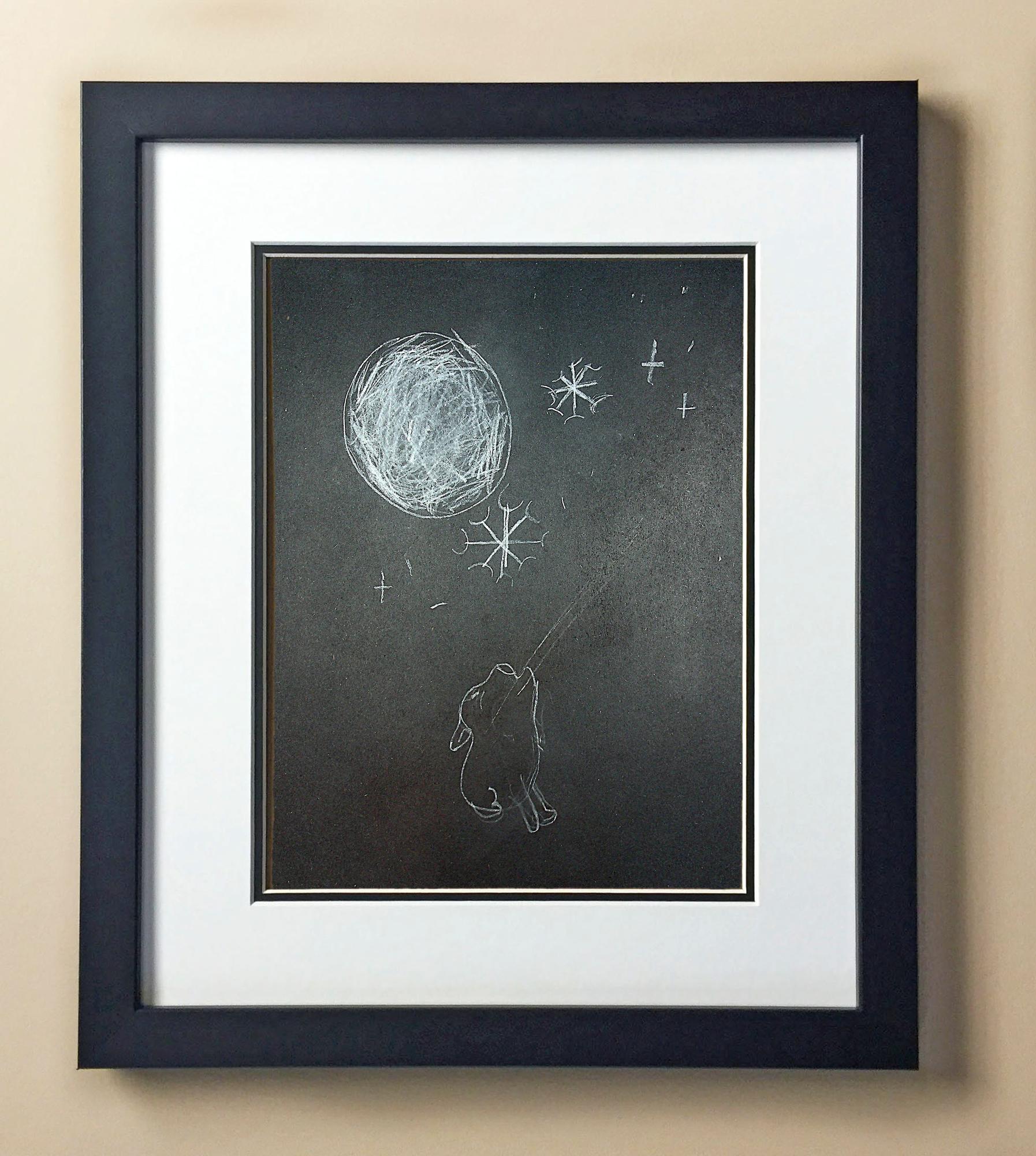 Included with the purchase is the Students Artwork, Frame, double matboard, shatter proof plexiglass, and a ready to hang backerboard with turnbuttons