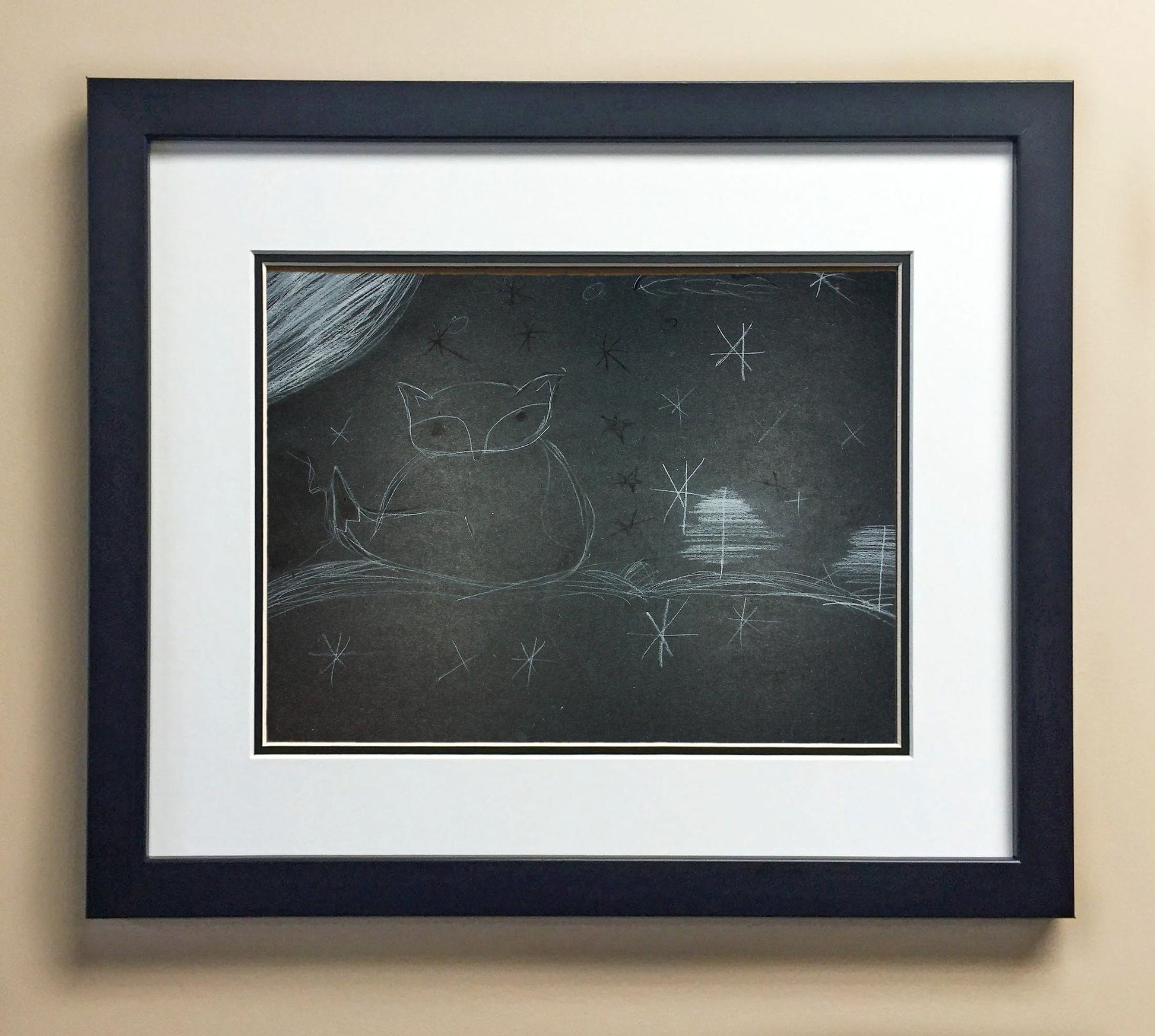 Included with the purchase is the Students Artwork, Frame, double matboard, shatter proof plexiglass, and a ready to hang backerboard with turnbuttons