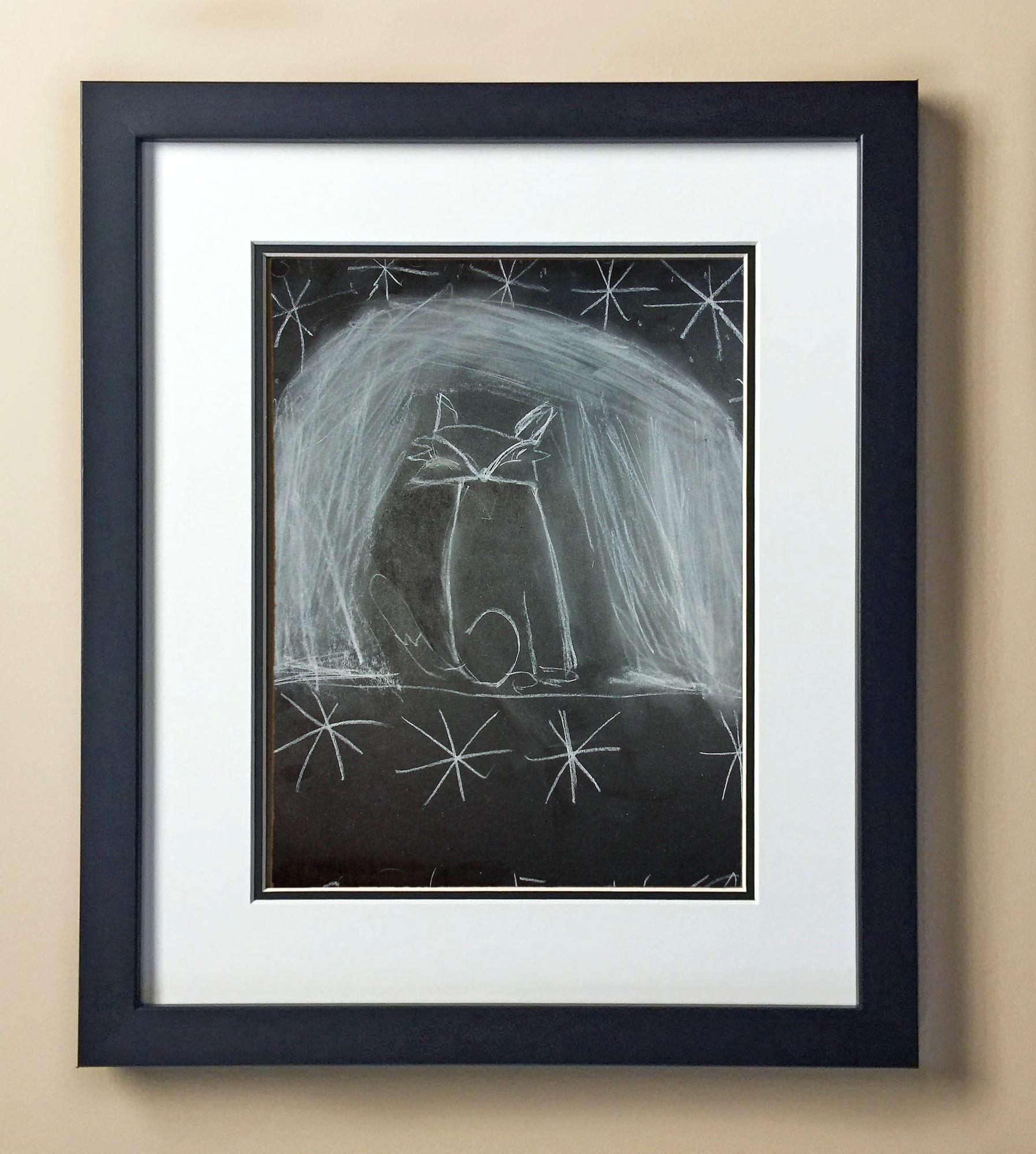 Included with the purchase is the Students Artwork, Frame, double matboard, shatter proof plexiglass, and a ready to hang backerboard with turnbuttons