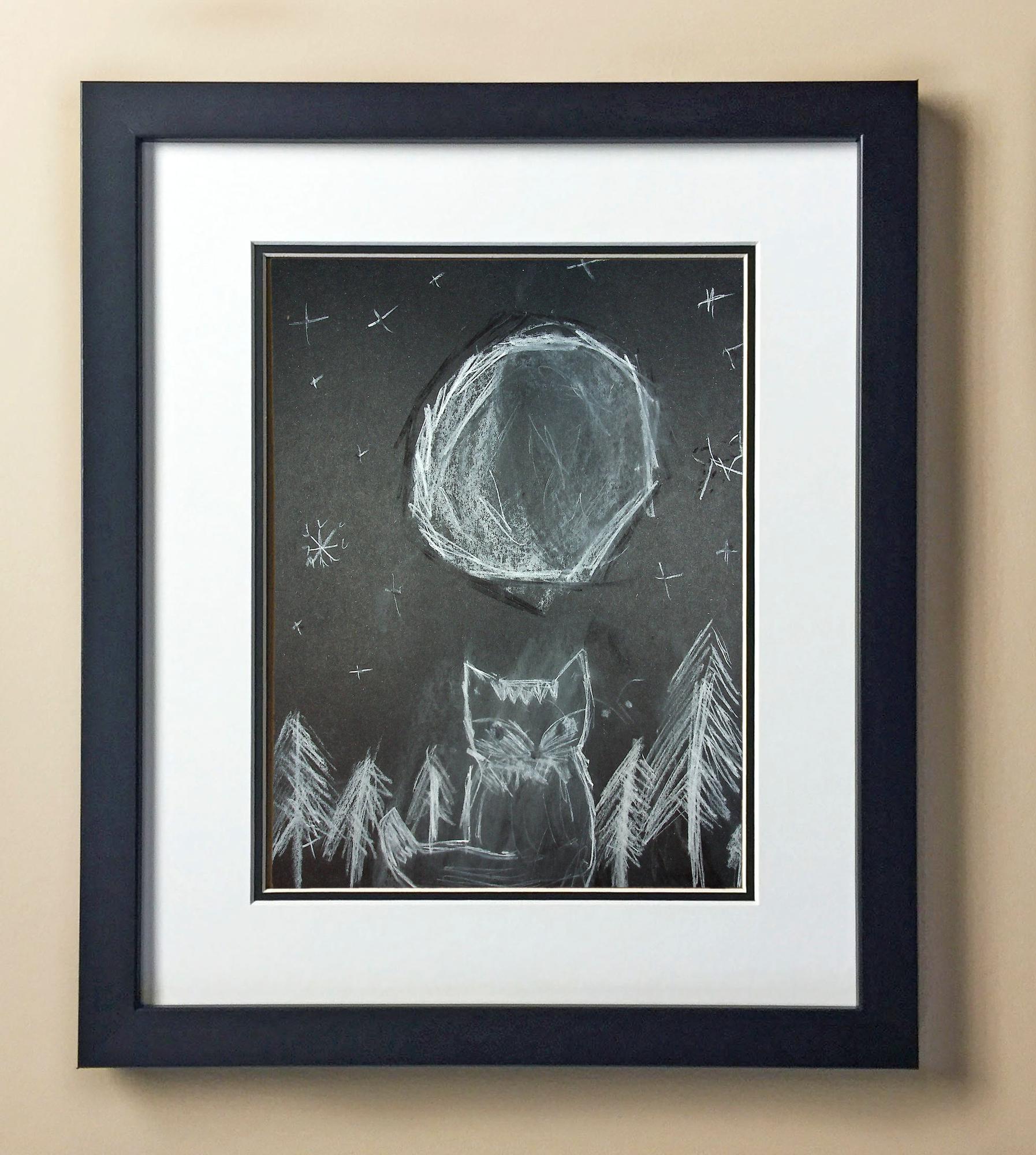 Included with the purchase is the Students Artwork, Frame, double matboard, shatter proof plexiglass, and a ready to hang backerboard with turnbuttons