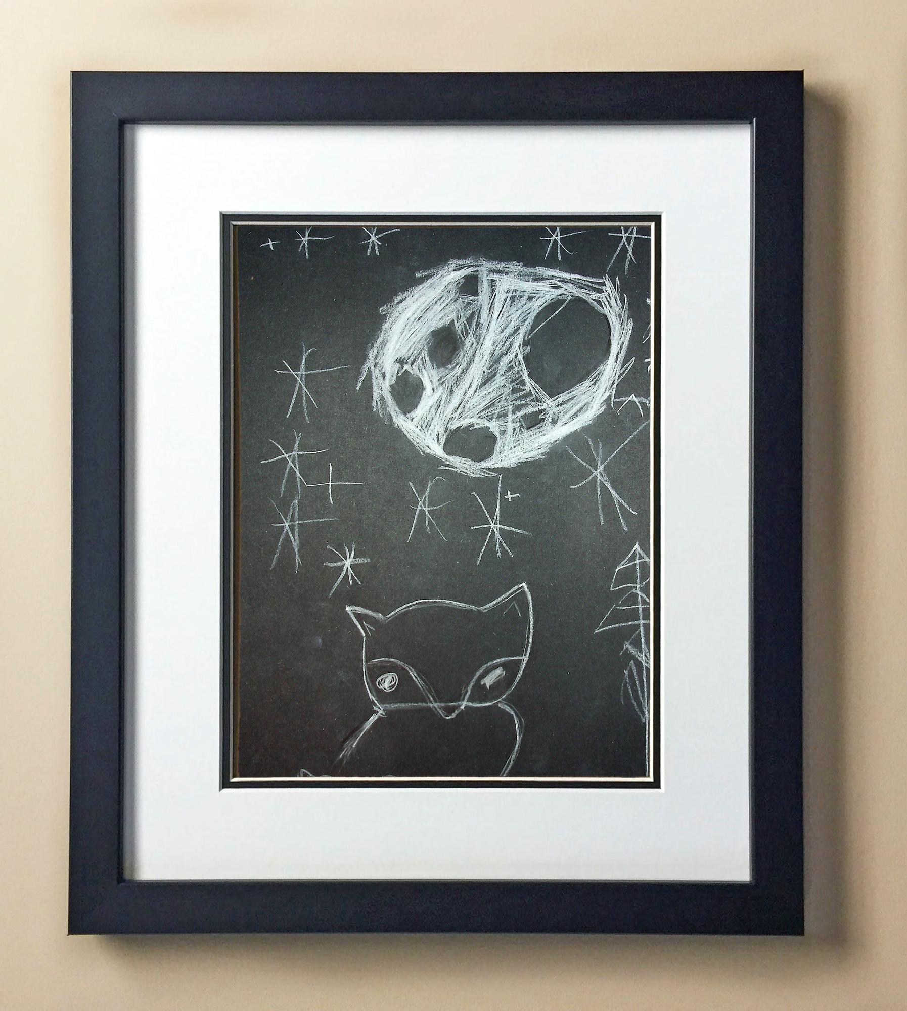 Included with the purchase is the Students Artwork, Frame, double matboard, shatter proof plexiglass, and a ready to hang backerboard with turnbuttons