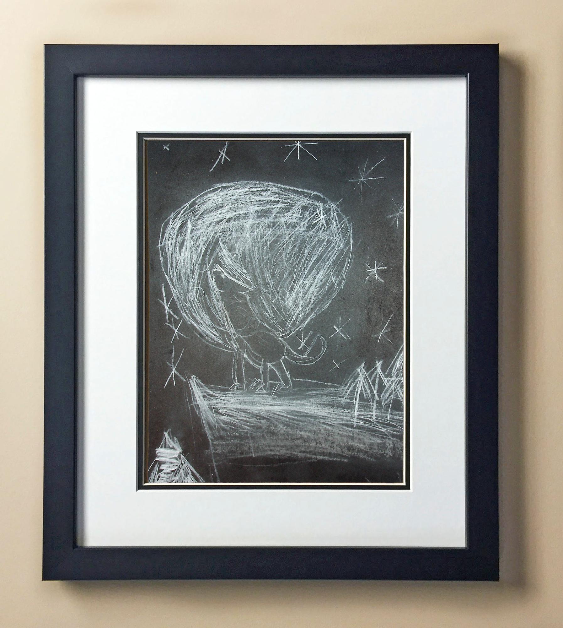 Included with the purchase is the Students Artwork, Frame, double matboard, shatter proof plexiglass, and a ready to hang backerboard with turnbuttons