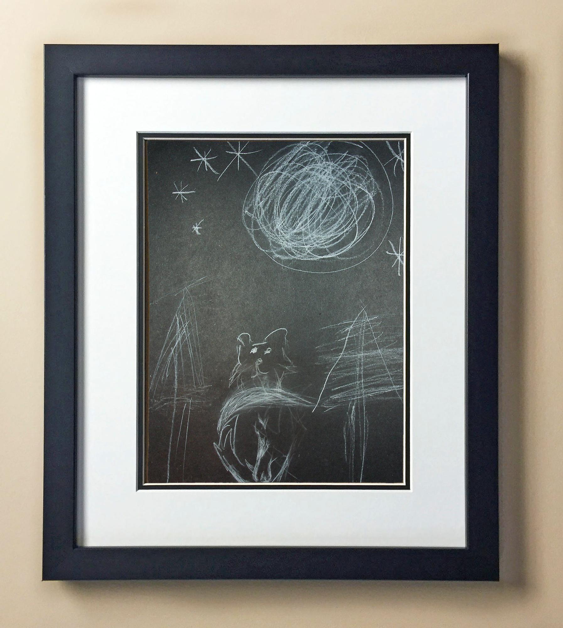 Included with the purchase is the Students Artwork, Frame, double matboard, shatter proof plexiglass, and a ready to hang backerboard with turnbuttons
