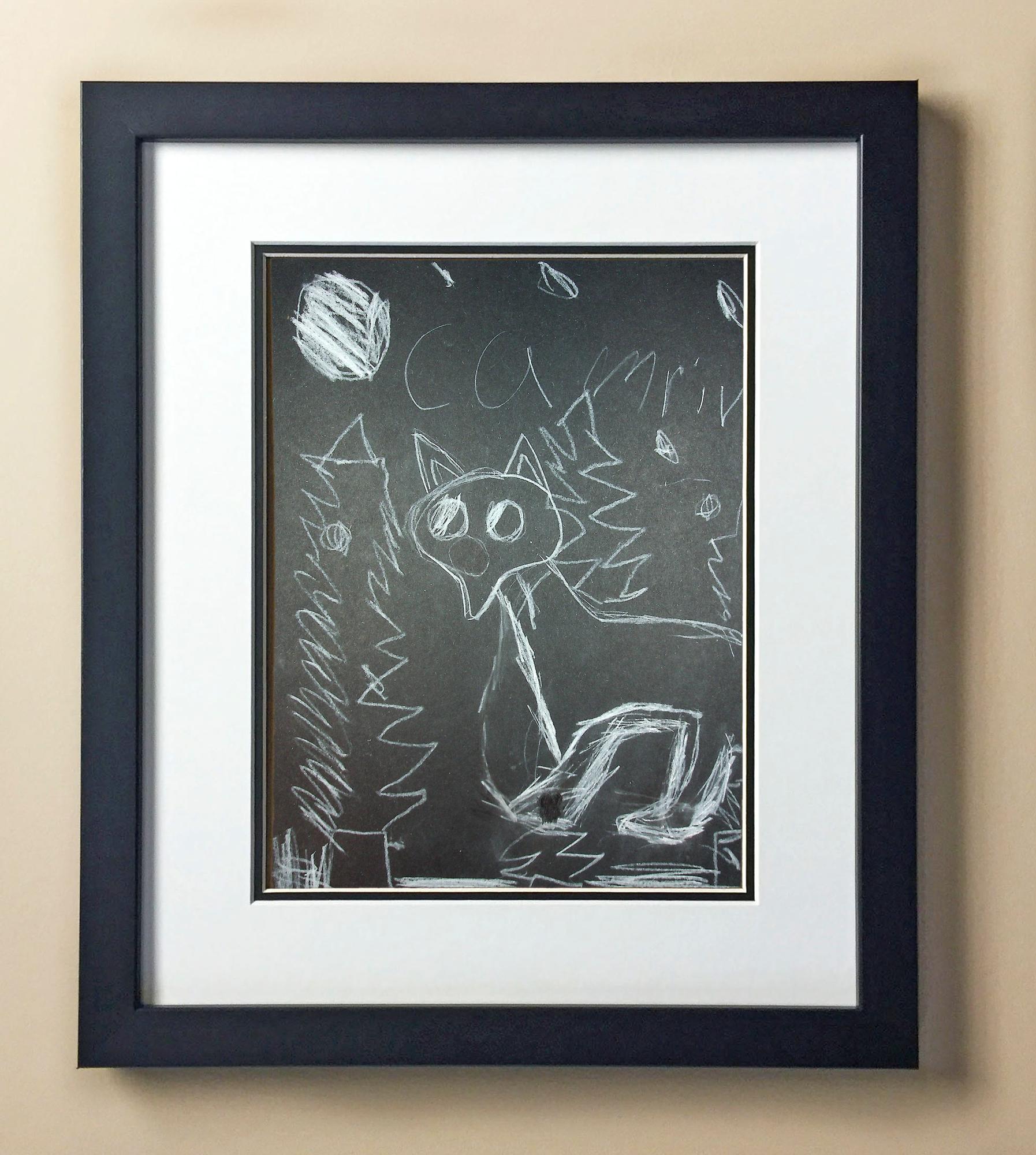 Included with the purchase is the Students Artwork, Frame, double matboard, shatter proof plexiglass, and a ready to hang backerboard with turnbuttons