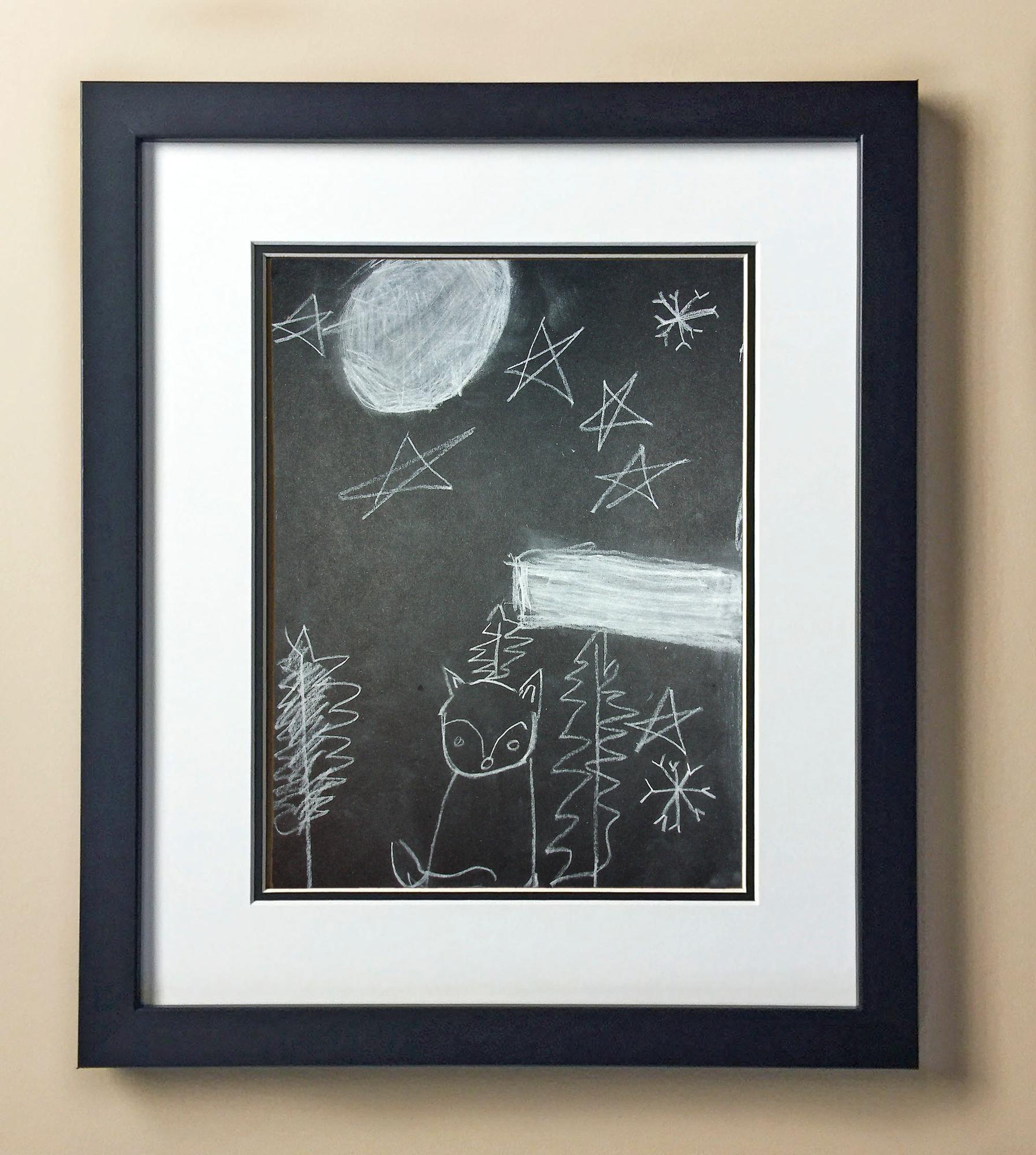 Included with the purchase is the Students Artwork, Frame, double matboard, shatter proof plexiglass, and a ready to hang backerboard with turnbuttons