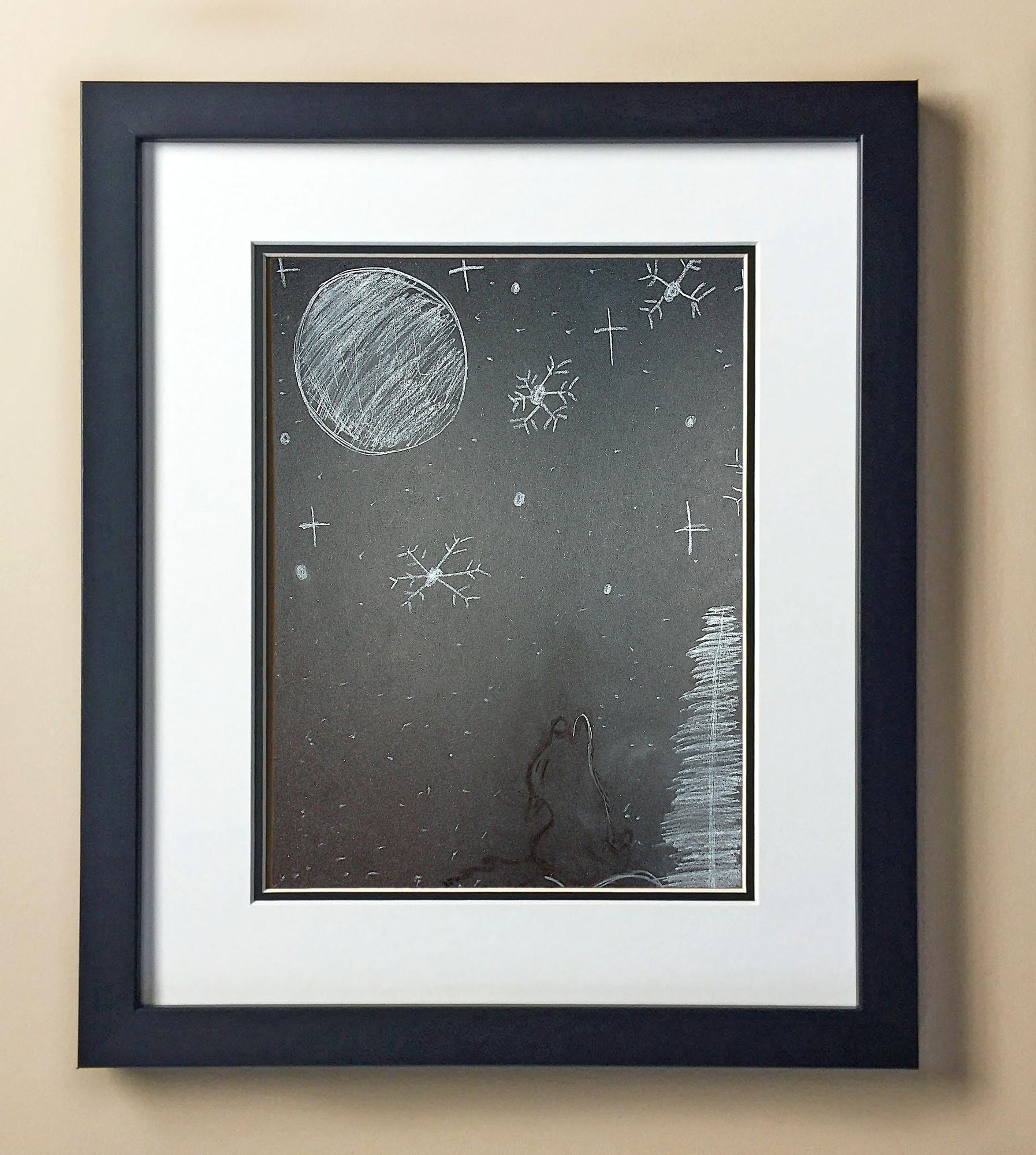 Included with the purchase is the Students Artwork, Frame, double matboard, shatter proof plexiglass, and a ready to hang backerboard with turnbuttons