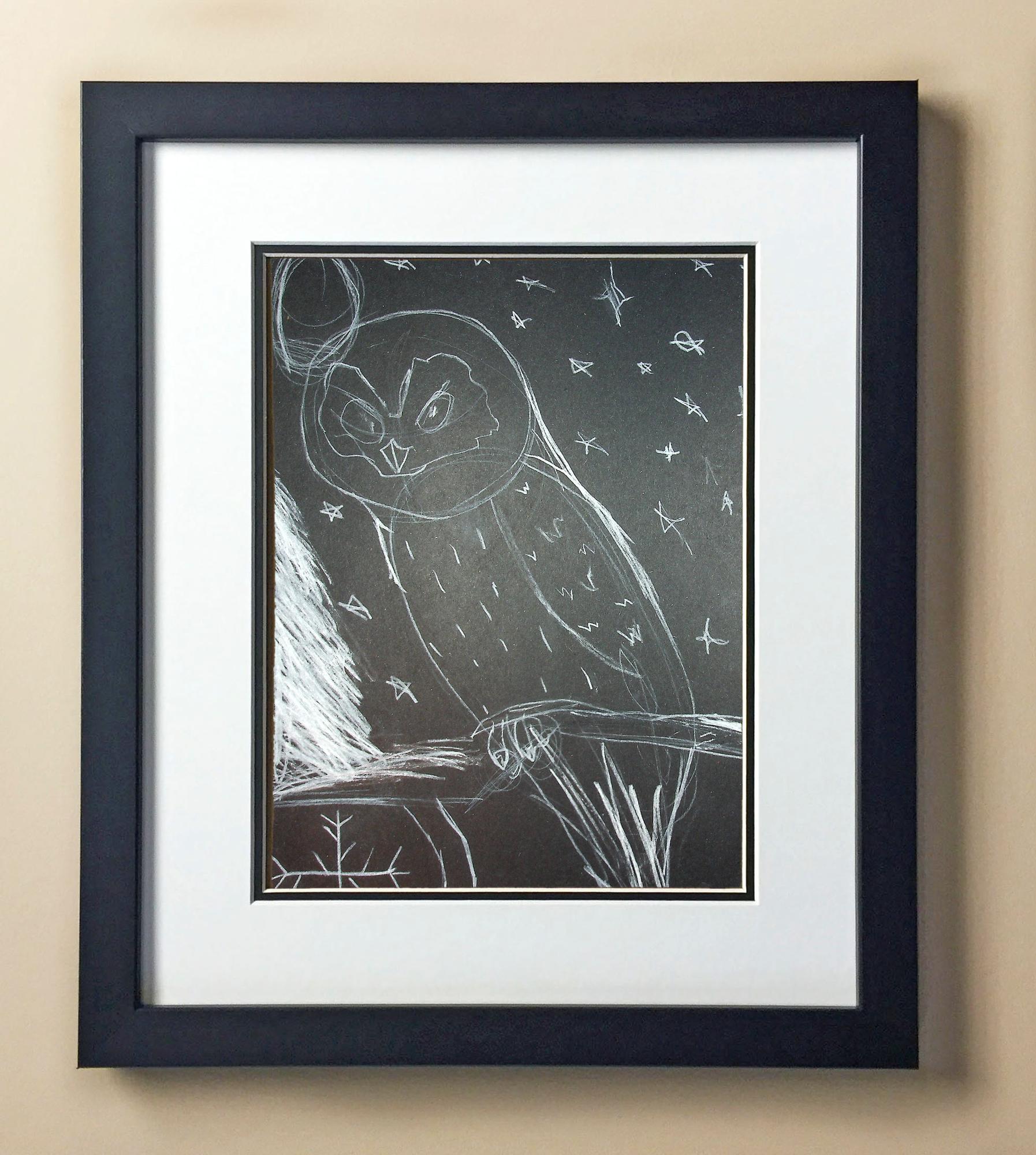 Included with the purchase is the Students Artwork, Frame, double matboard, shatter proof plexiglass, and a ready to hang backerboard with turnbuttons