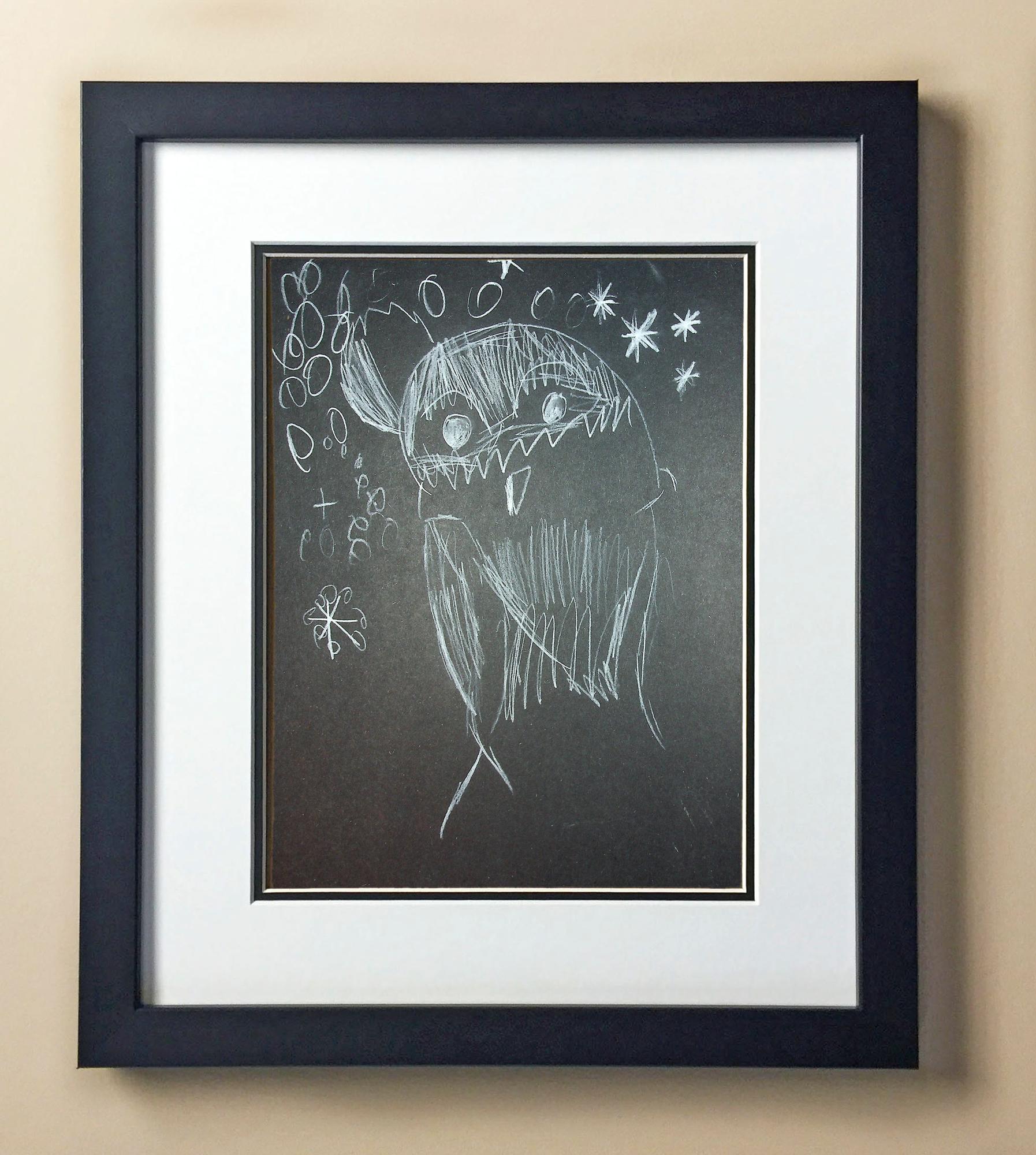 Included with the purchase is the Students Artwork, Frame, double matboard, shatter proof plexiglass, and a ready to hang backerboard with turnbuttons