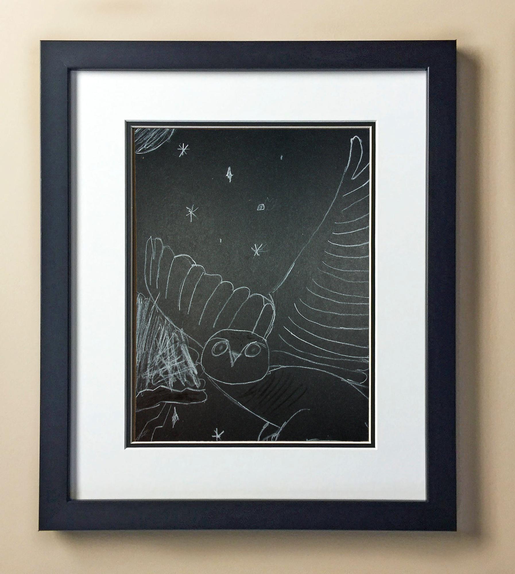 Included with the purchase is the Students Artwork, Frame, double matboard, shatter proof plexiglass, and a ready to hang backerboard with turnbuttons